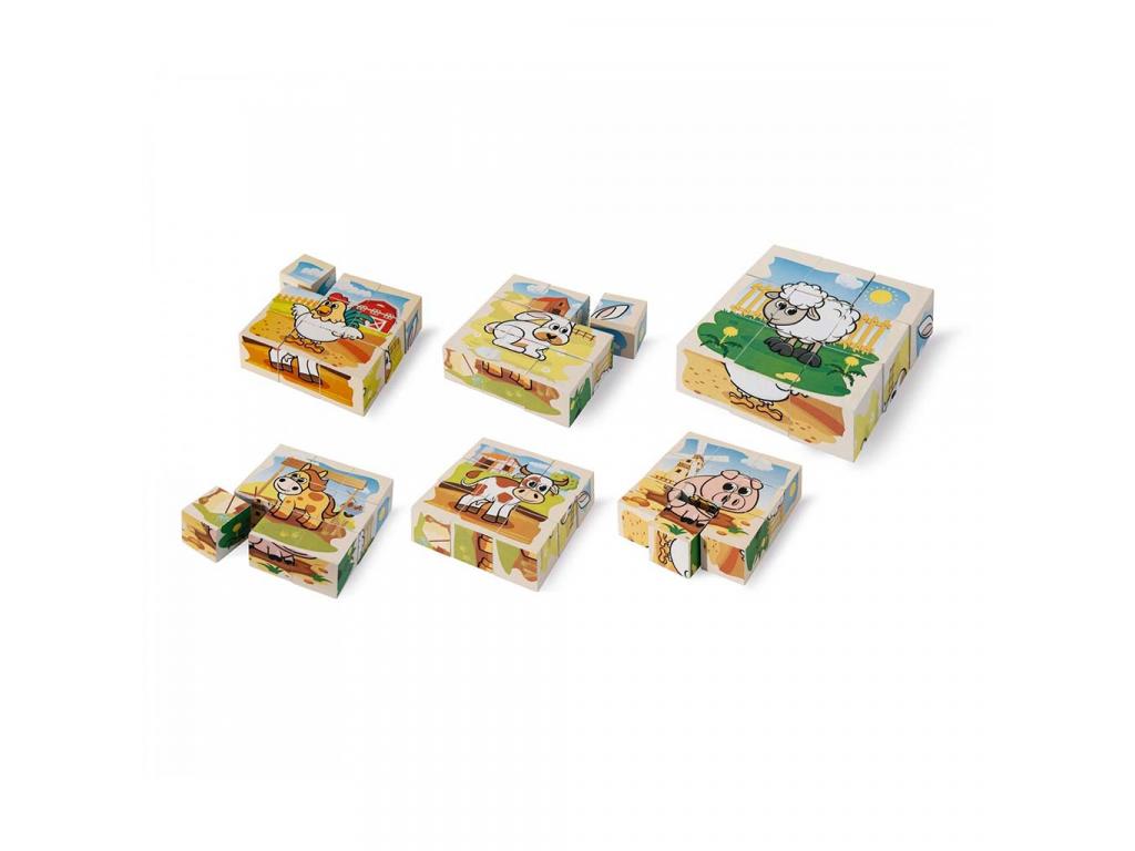 A játék lényege, hogy a gyermek a megfelelő oldalakkal forgatva a kockákat összeállítsa a hat különböző háziállat egyikét: tehén, bárány, csirke, ló, kutya és malac mind megjelennek a kockák oldalain. A kedves, színes rajzokkal illusztrált állatok gyorsan elnyerik a kicsik szívét, és szívesen térnek vissza újra meg újra a kirakáshoz. A feladat egyszerre kihívás és szórakozás, ami pont ideális a 2 éves korosztály számára.