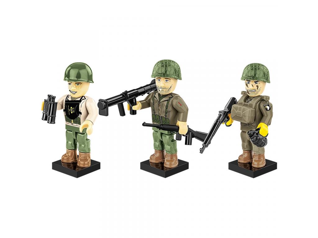 A dobozban három részletesen kidolgozott figura található, mindegyik más felszereléssel és öltözettel. Az egyikük gránátot és távcsövet tart a kezében, a másik a híres M1 Garand puskát használja, míg a harmadik egy bazookával vonul harcba. A ruházatuk egyedi, a fejfedők és az arckifejezések pedig kifejezetten karakteresek ezzel ösztönözve a szerepjátékot és a történetmesélést.