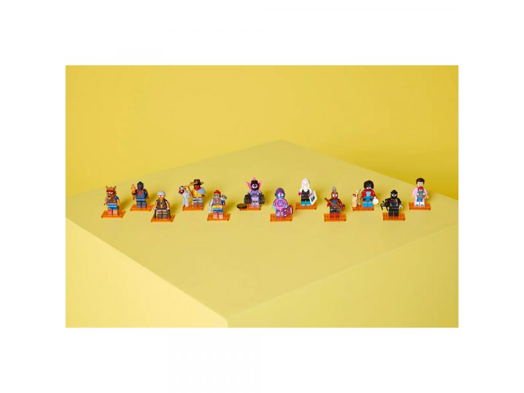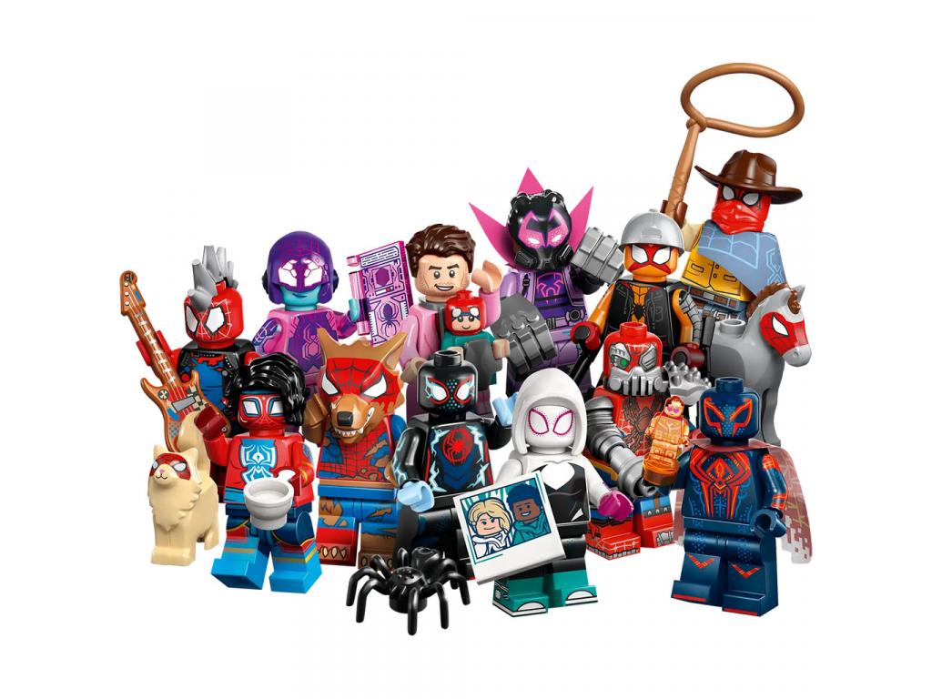 Mindegyik doboz egy gyűjthető és megépíthető Pókember-minifigurát rejt az összesen 12 figura közül: Miles Morales/Pókember, Miguel OHara/Pókember 2099, Gwen Stacy/Pók-Gwen, Hobie Brown/Spider-Punk, Pavitr Prabhakar/Spider-Man India, Miles G. Morales/Prowler, Peter B. Parker/Spider-Man és May Mayday Parker, Margo Kess/Spider-Byte, Peter Parker/Werewolf Spider-Man, Patrick OHara/Web-Slinger, Petra Parker/Cyborg Spider-Woman és Charlotte Webber/Sun-Spider