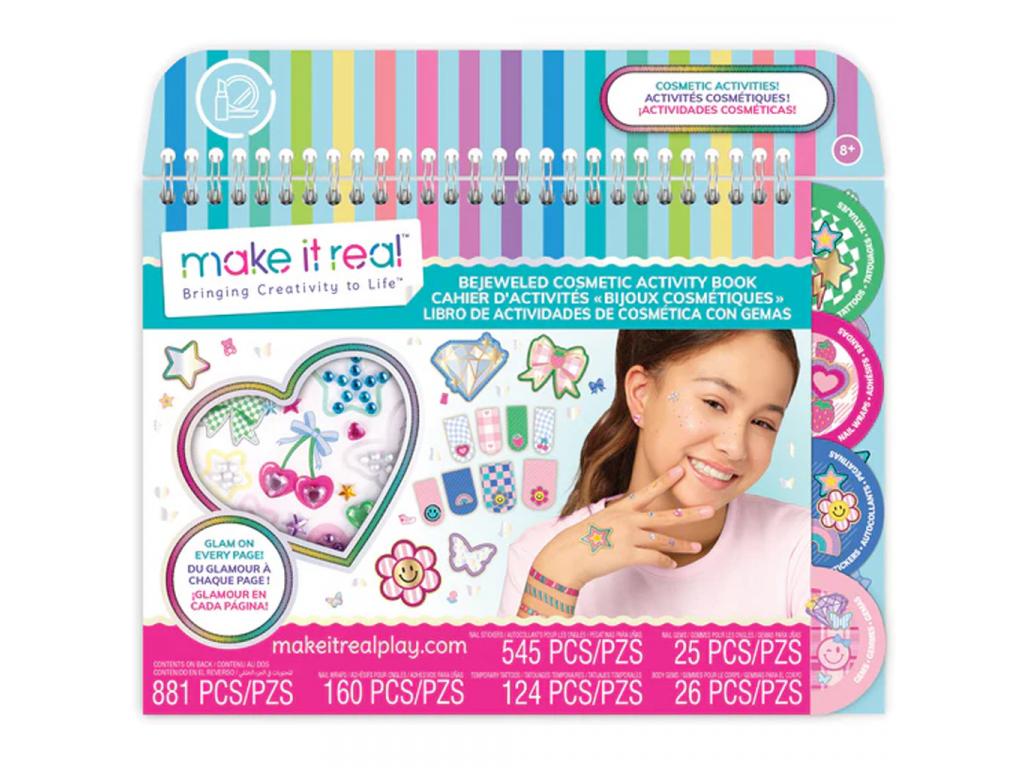 Engedd szabadjára a kreativitásodat a Make It Real: Ragyogj kozmetikai könyvvel, amely több száz csillogó matrica, gyöngy és díszítőelem segítségével varázsolja különlegessé a játékos szépségápolást. Ez a színes, spirálkötésű foglalkoztatókönyv nemcsak rajzolásra és matricázásra ad lehetőséget, hanem valódi kozmetikai élményt is nyújt, hiszen a testre, arcra és körmökre is felhelyezhető csillámdekorációkkal kísérletezhetnek a gyerekek.