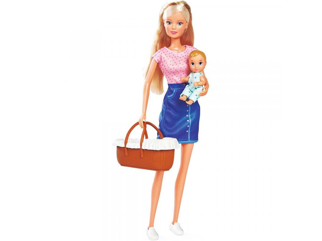 A csomagban Steffi baba anyukaként jelenik meg, kezében kisbabájával, és rengeteg hasznos kiegészítő segíti őket a babagondozásban legyen szó etetésről, fürdetésről vagy akár utazásról.
