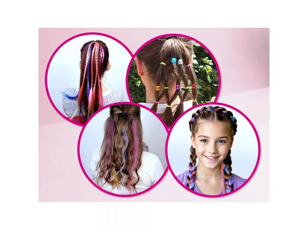 A csomag része még rengeteg színes gumi és többféle hajdísz, amelyekkel a gyerekek egyedi stílust alkothatnak legyen szó vidám iskolanapról, farsangról, szülinapi partiról vagy csak egy kreatív délutánról otthon. A szett használata nem igényel semmilyen előképzettséget, így a gyerekek egyedül is kipróbálhatják magukat a frizurakészítés világában, vagy akár anya-lánya közös program is válhat belőle.