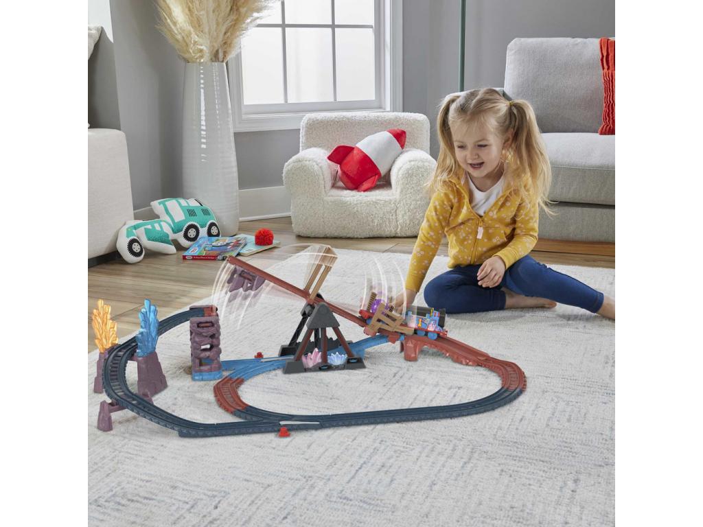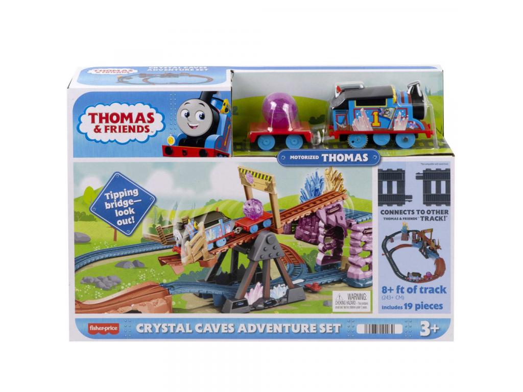 Induljon a kaland a hegyek mélyére Thomas-szal és a varázslatos kristályszállítmánnyal! A Thomas és barátai: Kristálybarlang pályaszett a Thomas, a gőzmozdony Minden mozdony mozdul! című sorozat Lookout Mountain rejtélye epizódja alapján készült, és izgalmas élményeket nyújt már 3 éves kortól. A szett központi eleme a motoros Thomas mozdony, amely egy csillogó lila kristályt szállít utánfutóján csak kapcsold be a mozdony tetején lévő kapcsolót, és máris indul a küldetés a sziklákon, hidakon és kristálybarlangokon keresztül.
