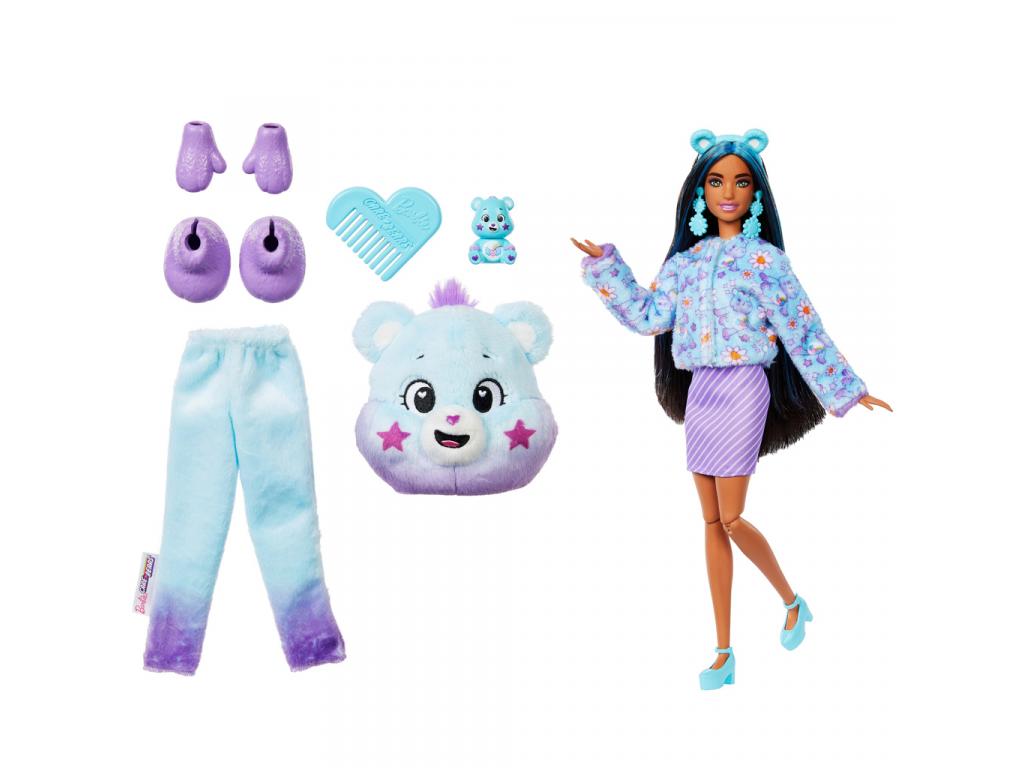 A dobozban először egy puha, lila-kék színű plüssmacis jelmez fogad, amit lefejtve a gyerekek egy gyönyörű Barbie babával találkozhatnak. A baba hosszú, sötét haja különleges tulajdonsággal rendelkezik: hideg vagy meleg víz hatására színt vált, így újabb és újabb megjelenést fedezhetnek fel rajta. A szett része egy puha kisállatfigura, valamint kiegészítők, mint a fésű, cipő, kesztyű, nadrág és egy menő kabát is, amely szintén a Gondos bocsok mintáját hordozza.