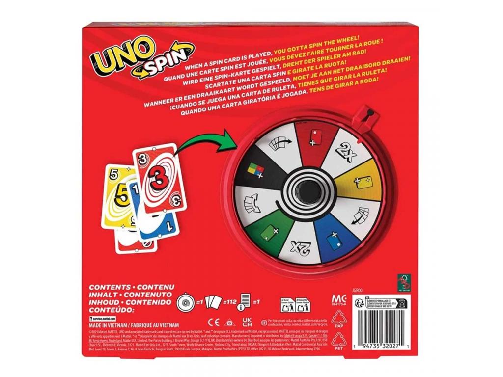 Fedezd fel az UNO új, izgalmas változatát: a UNO Spin társasjátékot! Ez a klasszikus UNO játék egy különleges csavart kapott mostantól a játékmenetet egy pörgettyű is befolyásolja, ami kiszámíthatatlan fordulatokat hoz minden egyes körben!