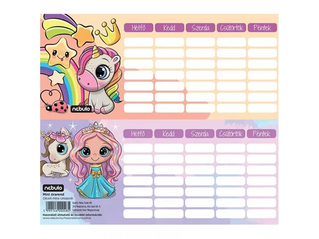 Nebulo: Unikornis és királylány egylapos, kétoldalas mini órarend