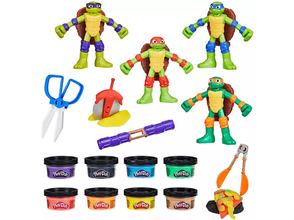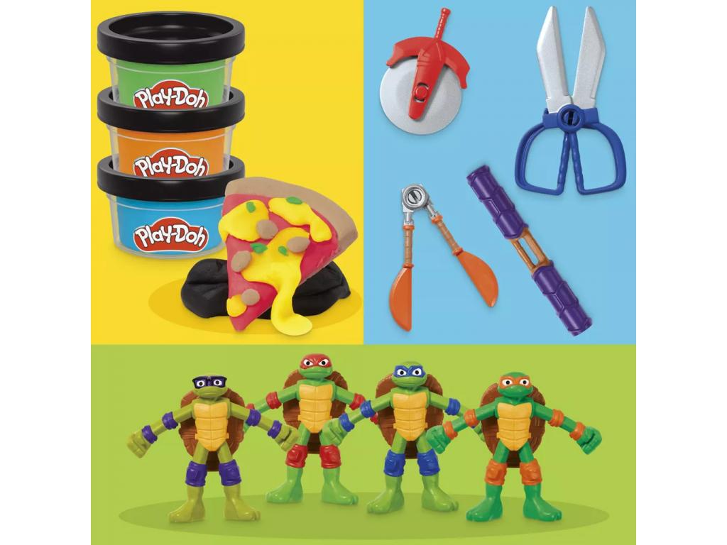 A csomag 8 tégely színes Play-Doh gyurmát tartalmaz, köztük olyan árnyalatokat, mint zöld, piros, lila, sárga, kék és fekete így a teknőcök páncéljától kezdve egészen a sajtos pizzáig minden megformázható. A szettben négy hajlékony figura kapott helyet, amelyek kezei és lábai mozgathatók, valamint különféle eszközöket is találsz, mint például pizza szeletelő, olló, nunchaku vagy bot mind ikonikus elemei a teknőcök világnak, de egyben gyurmaszerszámként is funkcionálnak!
