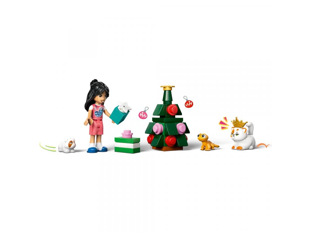 Varázsolj ünnepi hangulatot és meghitt pillanatokat a 6 éves vagy nagyobb lányok és fiúk számára, akik a LEGOŽ Friends Adventi naptár 2025 (42668) játék építőkészlet ajtajait nyitogatják. A szettben 5 minibabafigura (Aliya, Autumn, Liann, Nova és Leo), valamint 5 LEGO állatka (2 kutya-, egy tengerimalac-, egy gekkó- és egy macskafigura) található. Nyiss ki minden nap egy ajtót, hogy összeálljon az ünnepi pizsamaparti története! Keresd az ajtók mögötti kedves kis meglepetéseket karácsonyi építmények formájában! Fedezz fel olyan ünnepi tevékenységeket, mint a levélírás a Mikulásnak, a fa feldíszítése, a karaoke éneklés, a lovaglás a játék lovon, vagy a forró csoki készítése. Mindegyik minibabafigurához tartozik egy matrac, a kisállatoknak pedig különféle kiegészítőik vannak, hogy a jelenet megépítése közben a gyerekek változatos történeteket találhassanak ki. A szettben olyan vidám kiegészítők várnak még, mint a kanapé, a lámpa, a kandalló, a szán, az 5 ajándékdoboz és a LEGO elem rénszarvas-plüssfigura. A szett remek karácsonyváró ajándék a gyerekek számára, de ez a kreatív játék fejleszti a kis építők szociális készségét is, miközben a barátokkal együtt egy felejthetetlen pizsamapartin vesznek részt.