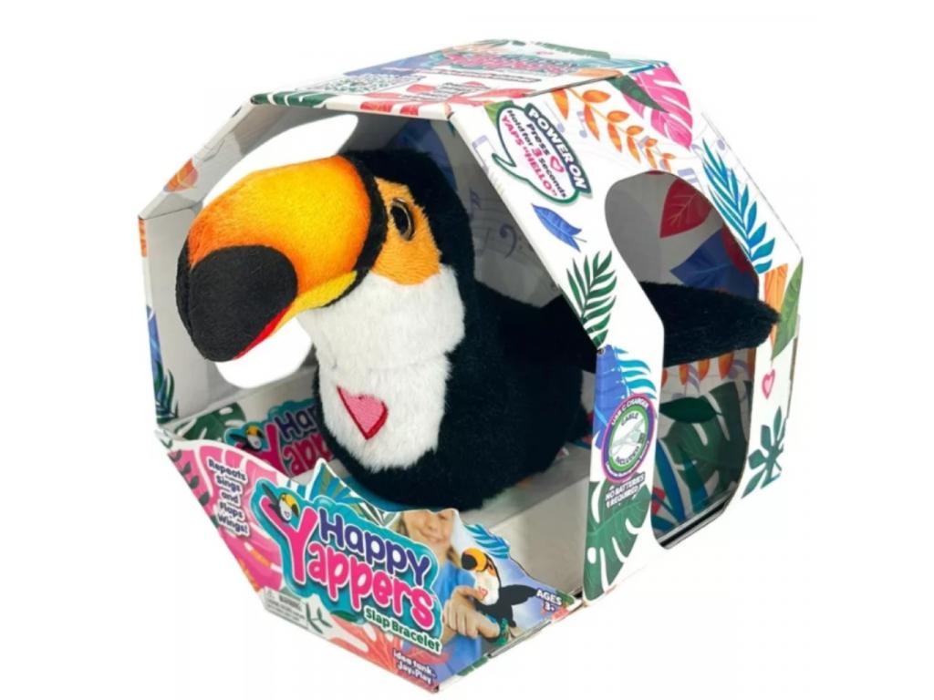 Itt a Happy Yappers! Csapd a csuklódra, nyomd meg a szívet, és kezdődhet a móka! A Happy Yappers Tukán nemcsak puha és ölelhető plüssfigura, hanem interaktív barát is, aki mindig jókedvet hoz a gyerekek életébe. Beszélgethetsz vele, ő pedig ismétel, énekel, csapkod a szárnyaival, és még a barátaival is tud beszélgetni! A slap-bracelet funkciónak köszönhetően a gyerekek könnyedén a csuklójukra pattinthatják, így bárhová magukkal vihetik kedvenc társukat. A színes, vidám design és a kedves tukánforma garantáltan hamar a kicsik kedvence lesz, miközben fejleszti a képzelőerőt, a szerepjáték készségeket és a kommunikációt. A Happy Yappers figurák csak arra várnak, hogy berepüljenek az otthonodba, és vidám pillanatokat hozzanak a mindennapokba.