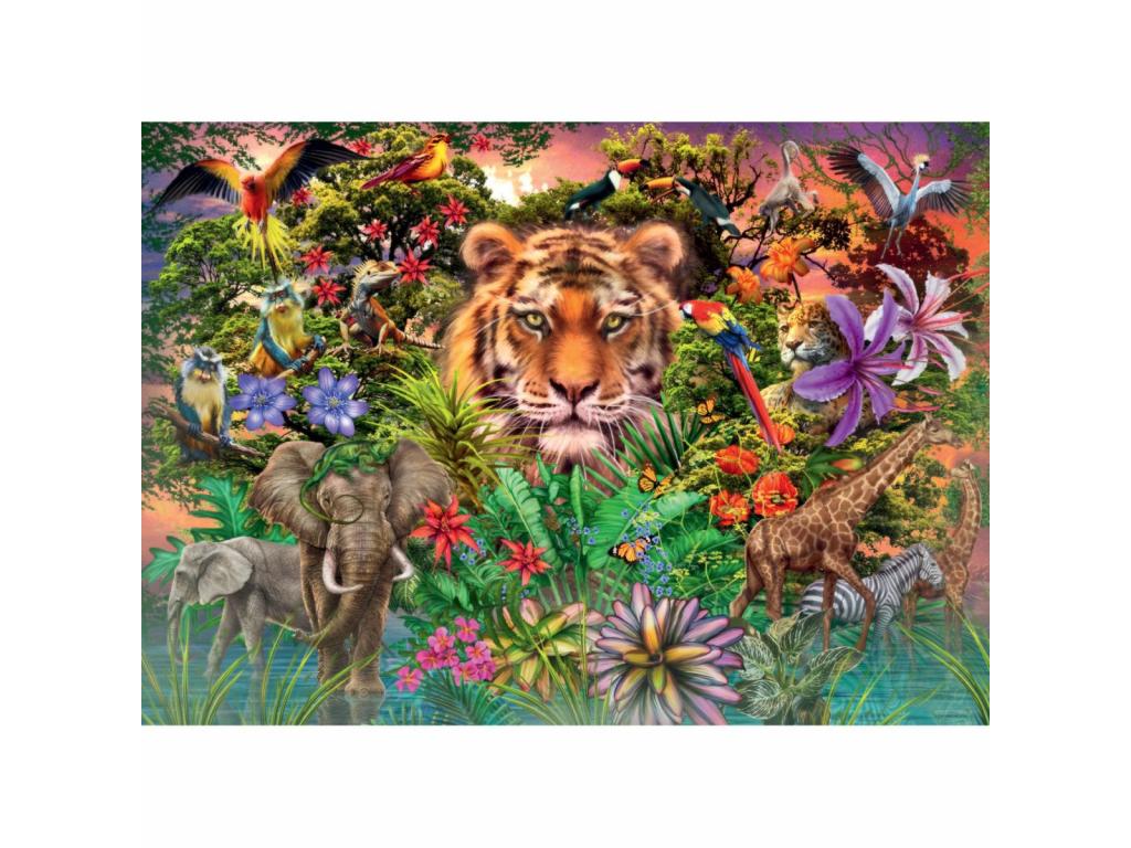 Menekülj el a szürke hétköznapok elől a dzsungel színpompás világába! 1000 darabos puzzle a Ravensburger megszokott, kimagasló minőségében, lenyűgöző őserdei vadállatokkal és növényekkel.
