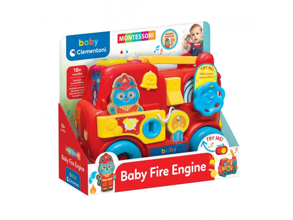 Oktató tűzoltóautó a Clementoni Baby-től, a Montessori-elvek ihlette. Serkenti a motorikus képességeket és az ok-okozati gondolkodást.