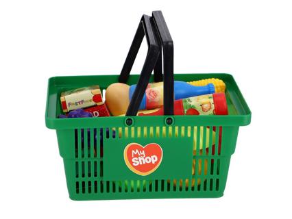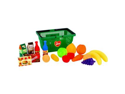 18 darabos bevásárlókosár. Bevásárlókosár 17 szupermarket kiegészítővel. Szórakoztató bevásárlás utánzása. 3 éves kortól alkalmas.