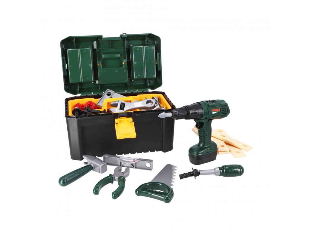 37 darabos szerszámos láda, tele játék szerszámokkal. Ez a láda tartalmaz egy fogót, egy szögmérőt, egy csipeszt, egy vízmértéket, egy csavarhúzót, egy fúrót, szögeket, csavarokat és még sok minden mást. 3 éves kortól alkalmas.