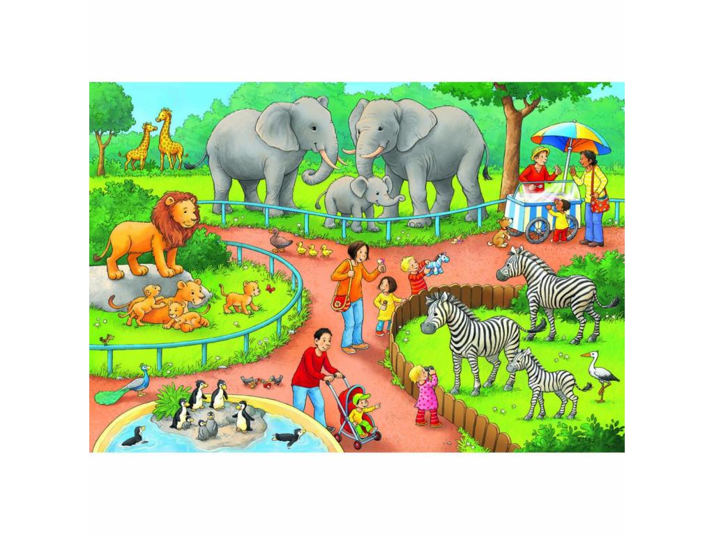 Irány az állatkerti kaland! A Ravensburger gyermekpuzzle Egy nap az állatkertben két, egyenként 24 darabos puzzle-ből áll. Szilárd kartonból készült, 4 éves kortól alkalmas.