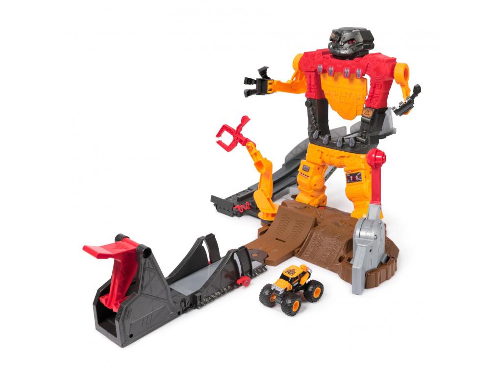 Zúzz, csapj oda és harcolj a Monster Jam SmashBot játékkészlettel, amely egy exkluzív Smash & Bash monster truckot tartalmaz fantasztikus ajándék 3 éves és annál idősebb fiúknak és lányoknak. A játékkészlet tartalmaz egy állítható indítót, egy 38,1 cm-es SmashBot robotot, amelyről a gyerekek elindíthatják az exkluzív, 1:64 méretarányú Smash & Bash JCB Digatron teherautót. Ütközd össze a monster truck játékaidat, majd pár kattintással javítsd meg őket, hogy a Monster Jam akció folytatódhasson. Célozz a robotra a teherautóddal, és próbáld meg lelőni. Győzd le a SmashBotot, majd pár forgatással javítsd meg, hogy újra játszhass vele. Számos más Monster Jam teherautó is gyűjthető, így a Grave Digger, a Megalodon, az El Toro Loco és még sok más (mindegyik külön kapható) is kiegészítheti a gyűjteményedet, és mindegyikkel versenyezhetsz! Monster Jam játékok, mint például távirányítású autók és még sok más, hogy az izgalom otthon is folytatódjon. Vágj bele az akcióba a Monster Jam SmashBot játékkészlettel.
