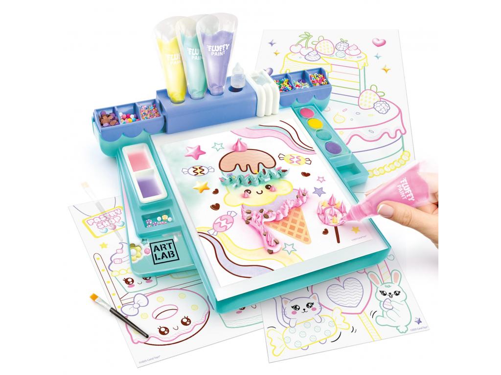 Festőkészlet több puha figurával, amelyeket ki lehet festeni. Festékkel, ecsettel és kiegészítőkkel együtt. Kreatív játékszett, 3 éves kortól alkalmas.