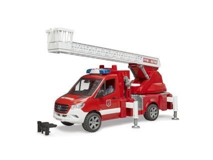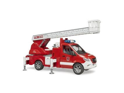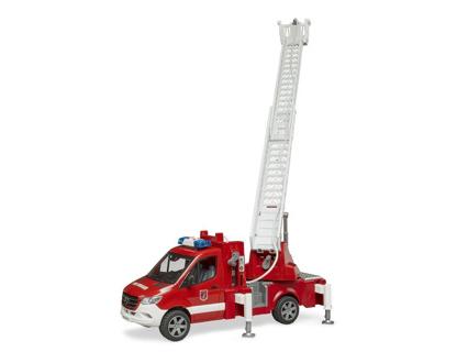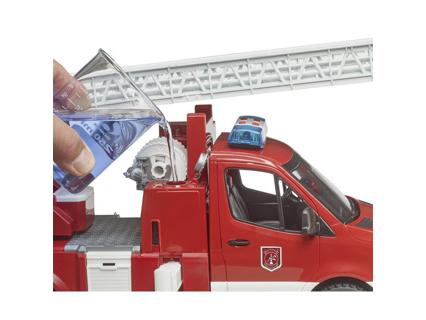 Bruder tűzoltóautó létrával és vízszivattyúval + fény- és hangmodullal. Méret: 45 x 17,2 x 21,8 cm. Jellemzők: Az ajtó nyitható és zárható. Kihúzható létra. A vízszivattyú valódi vizet tud spriccelni, vízzel tölthető. 3 LR44 elemmel működik, amelyek a csomagban megtalálhatók. Ajánlott életkor: 4 év felett.