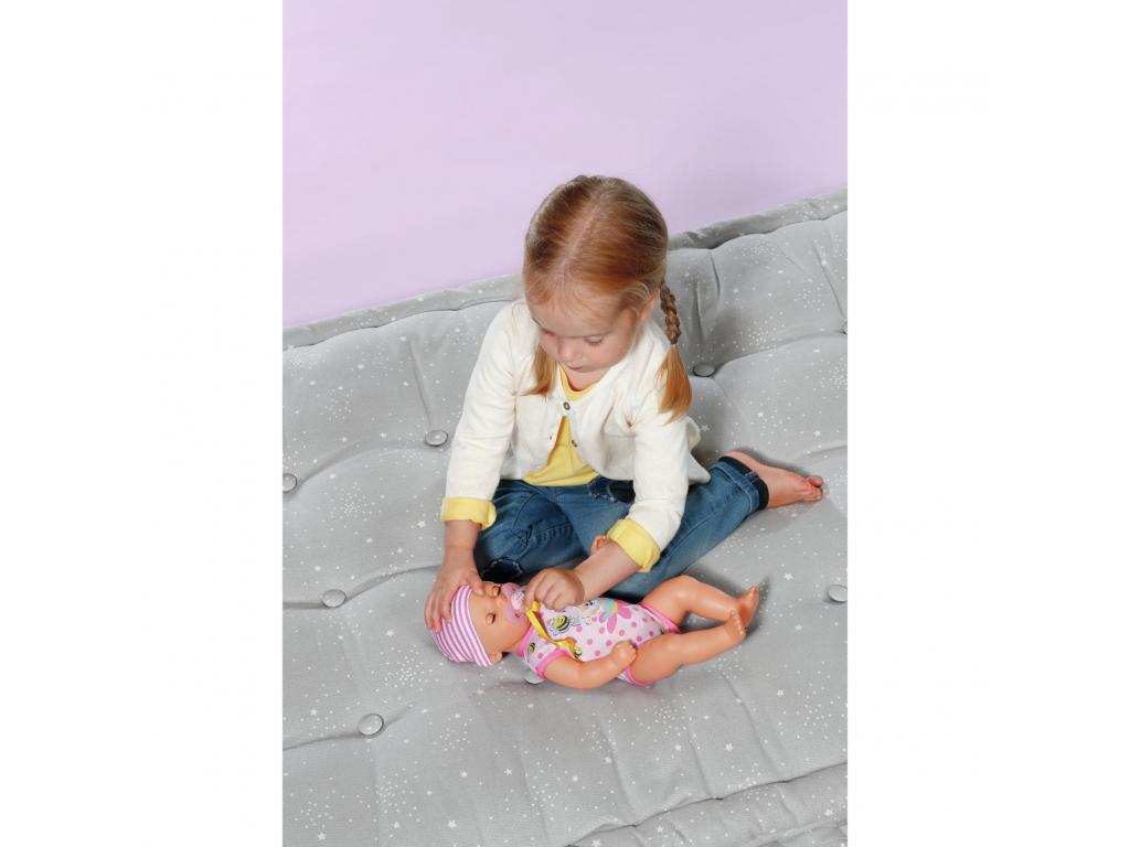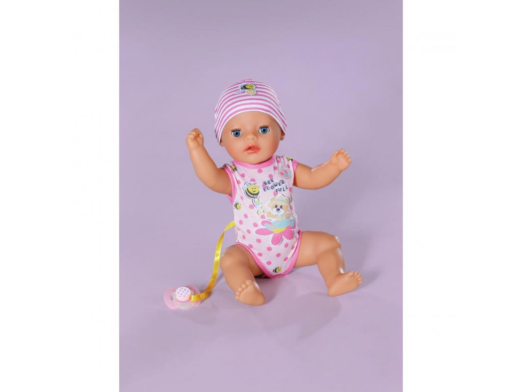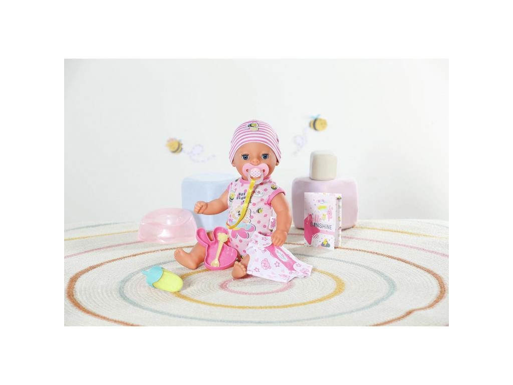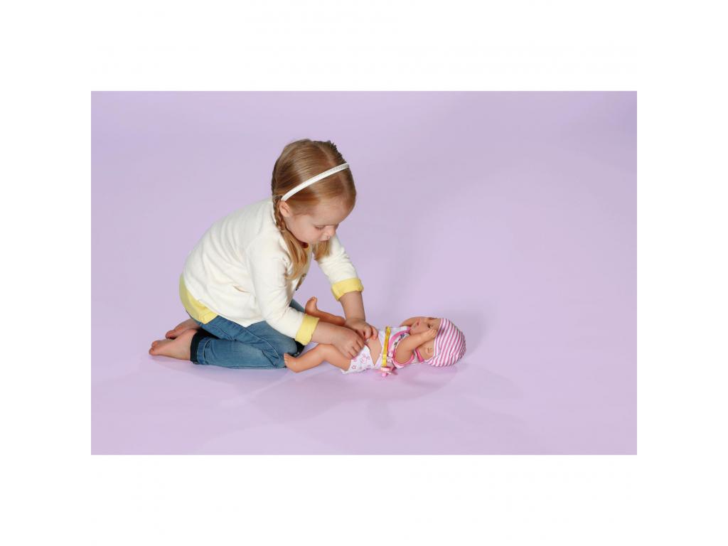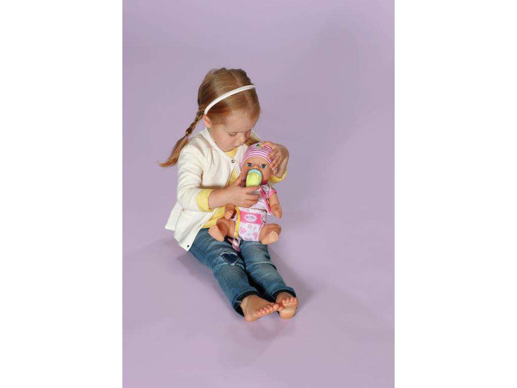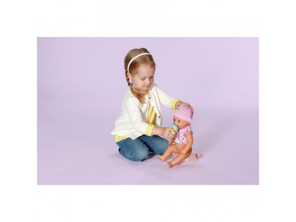 A BABY born baba 7 fantasztikus funkcióval rendelkezik, amelyek mindegyike elemek nélkül működik. Minden szükséges dologgal ellátott. Ihat a cumisüvegéből, a rózsaszínű bilire ülhet, és pelenkázhatod is. Ha a testéhez rögzített cumit a szájába teszed, a szemei varázslatos módon kinyílnak vagy bezárulnak. Ha odaadod neki a cumit, és balra fordítod, akkor becsukja a szemét. Ha jobbra fordítod, akkor kinyitja a szemét. De ha lefekteted az ágyába szundikálni, akkor cumi nélkül is becsukja a szemét. Karjai, lábai és feje nagyon rugalmasak, így az öltöztetés és a levetkőztetés gyerekjáték. 36 cm-es magasságával alkalmas 1 éves kortól kezdve a kisebb gyermekek kezébe. Ez a tökéletes baba, amellyel először lehet változatos játékokat játszani, mintha egy igazi baba lenne. Gyermeke akár a babával együtt is ülhet a bilire, hogy játékosan megtanulja a szobatisztaságot. - Tökéletes kezdő baba a kicsiknek: a 36 cm-es BABY born Little baba kisebb mérete és alacsonyabb súlya miatt 1 éves és annál idősebb kisgyerekek számára alkalmas. - Varázslatos szemek: ha elfordítod a testéhez rögzített cumit, a baba szemei varázslatos módon kinyílnak és bezárulnak. - 7 korosztálynak megfelelő funkció: a BABY born Little tud inni, pelenkába pisilni, bilire menni, fürdeni és aludni. Rendkívül rugalmas, és varázslatos cumival rendelkezik. A kisgyerekek is könnyen tudnak játszani az összes funkcióval. - Elem nélkül működik: a BABY born Little baba teljesen mechanikus, ezért fürdőbe is vihető. - Tartalmazza: 36 cm-es BABY born Little játékruhával, sapkával, bilivel, 1 textil pelenkával, 1 cumisüveggel, 1 tányérral és kanállal, 1 cumival és 1 születési anyakönyvi kivonattal.