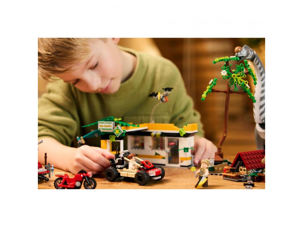 Izgalmas kalandok várnak a 7 évesnél idősebb gyerekekre és filmrajongókra ebben a Raptor és Titanosaurus nyomozási küldetés (76973) LEGOŽ Jurassic World építőkészletben. Ez a dinoszauruszos ajándék fiúknak és lányoknak előre megformált Titanosaurus és Velociraptor játékfigurákat, valamint 3 minifigurát tartalmaz: Zora Bennettet, Martin Krebset és Dr. Henry Loomist. A Velociraptor mozgatható állkapcsa van, a Titanosaurus pedig mozgatható nyakkal, fejjel és farokkal rendelkezik. Az interaktív játékszett tartalmaz egy töltőállomást, terepjárót pótkocsival, 3 fecskendővel ellátott táskát, motort, építhető drónt, kempingterületet eső fa funkcióval és még sok mást. A készletet könnyen magaddal viheted játszódélutánokra, és más LEGO Jurassic World készletekkel (külön kaphatók) is kombinálhatod. A LEGO Builder alkalmazás intuitív építési kalandra kalauzolja a fiatal rajongókat, akik nagyíthatnak és 3D-ben forgathatnak a modelleken, elmenthetik a készleteket és nyomon követhetik az előrehaladásukat. A készlet 582 darabot tartalmaz.Dinoszaurusz készlet lepje meg a Jurassic World Rebirth rajongóit 7 éves kortól ezzel a Raptor és Titanosaurus nyomozási küldetéssel, és reagáljon a gyerekek akció- és kalandjátékok iránti preferenciájára.Dinoszaurusz játékok előre megformált LEGOŽ Titanosaurus és Velociraptor figurákkal, valamint 3 minifigurával a Jurassic World Rebirth filmből, hogy inspirálják a szerepjátékokat és a végtelen történeteket.Részletes játékszett ez a LEGOŽ Jurassic World készlet tartalmaz egy töltőállomást, kiegészítőket a történetekhez, egy kempingterületet fával, egy kis játékmotort, egy drónt és egy terepjárót pótkocsivalKreatív funkciók van egy faesés funkció, egy drón, amely a játékjárműhöz vagy a töltőállomás tetejéhez rögzíthető, egy Velociraptor, amelynek állkapcája kinyitható, és egy Titanosaurus, amelynek feje, nyaka és farka mozgathatóLEGOŽ Jurassic World ajándék, amire büszke lehet lepje meg a dinoszauruszok és az állati kalandok iránt rajongó 7 éves vagy annál idősebb gyermeket ezzel a készlettel, amely garantáltan felkelti az érdeklődését. Új építési élmény a LEGOŽ Builder alkalmazás intuitív építési kalandra kalauzolja a gyerekeket. A gyerekek elmenthetik a készleteket, nyomon követhetik az előrehaladásukat, nagyíthatnak és 3D-ben forgathatják a modelleket az építés során. Ösztönözze a kreativitást a LEGOŽ Jurassic World készletek elősegítik a gyerekek dinoszaurusz játékok, kalandok és a természet iránti szeretetét, növelik kreativitásukat és lehetővé teszik számukra, hogy saját történeteket találjanak ki.Méretek az 582 darabos játékszettben található építhető töltőállomás körülbelül 10 cm magas, 21 cm széles és 16 cm mély, és rengeteg részletet tartalmaz, hogy még több játékélményt nyújtson