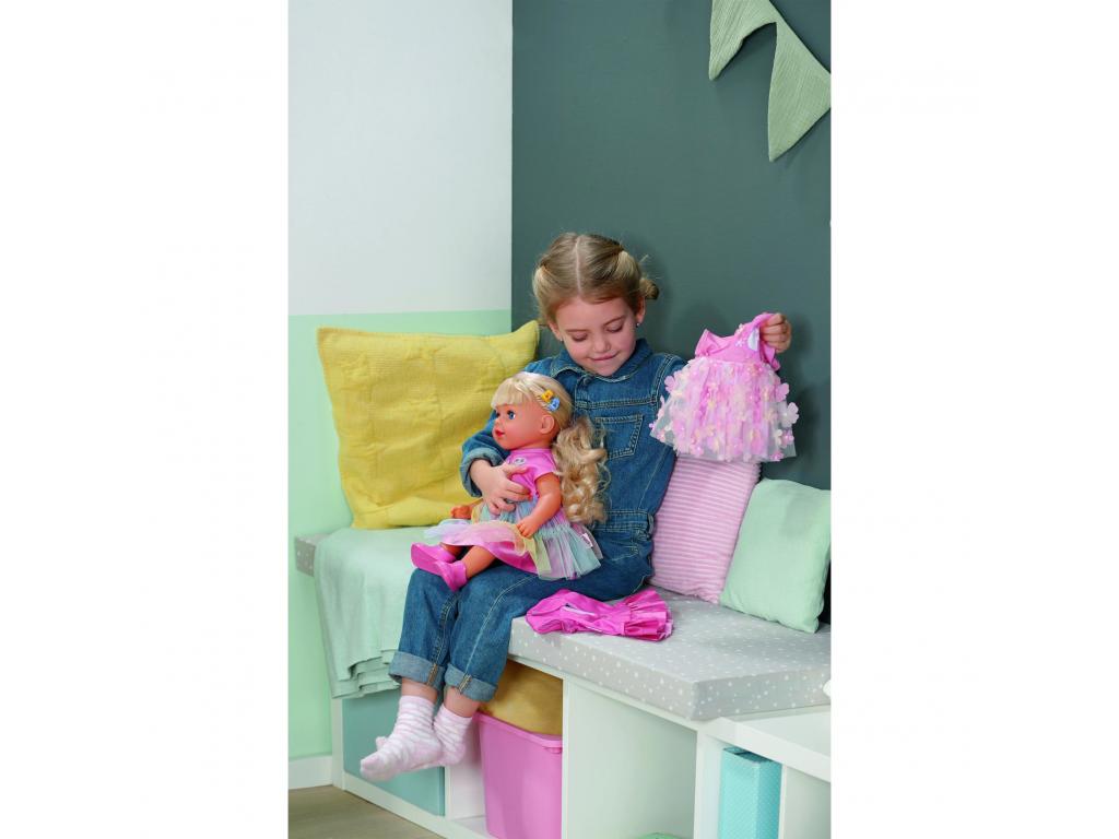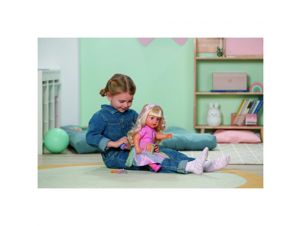 Carla baba szereti a vicces pózokat és mozdulatokat, és támasz nélkül is tud állni. Carla imád fürödni és a hosszú szőke haját fésülni. Saját hajkiegészítői vannak, amelyek illenek a ruháihoz. Minden BABY born ruha és kiegészítő illik rá. A BABY born-nal való sokoldalú szerepjáték fejleszti a gyermek képzelőerejét, és bizonyítottan támogatja a szociális készségek és értékek, mint például a felelősség, a kommunikáció és az empátia fejlődését.