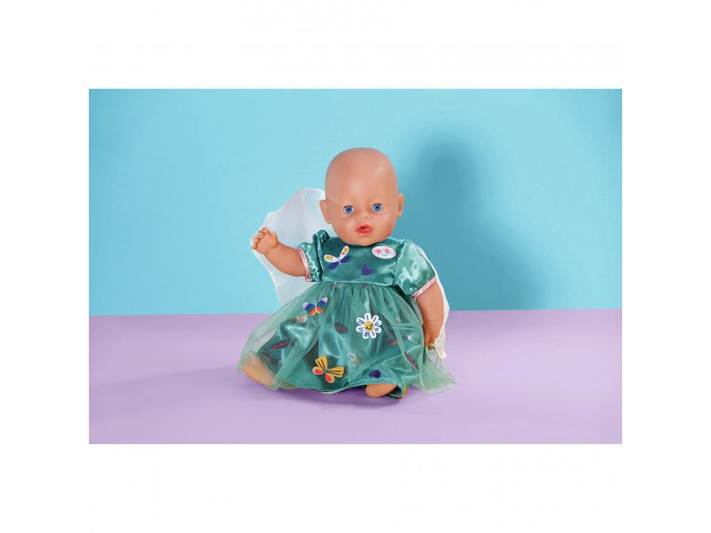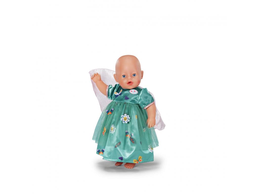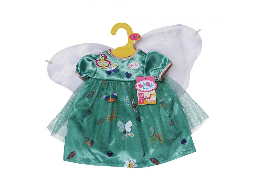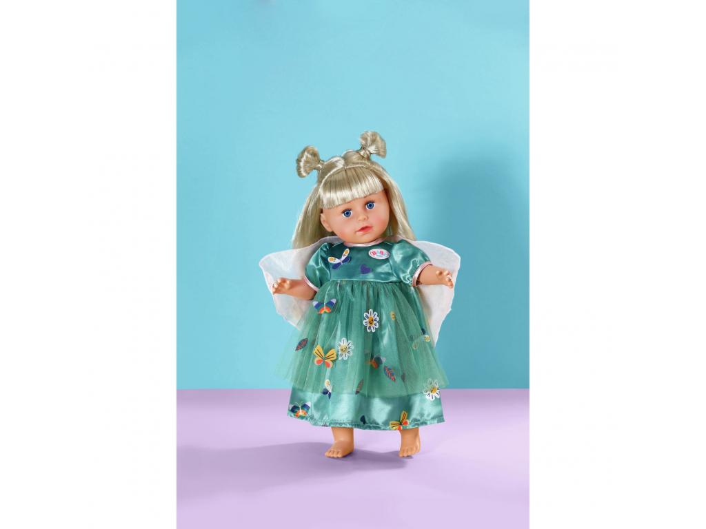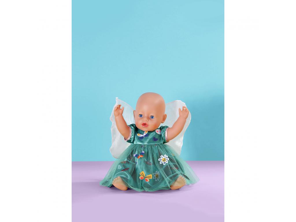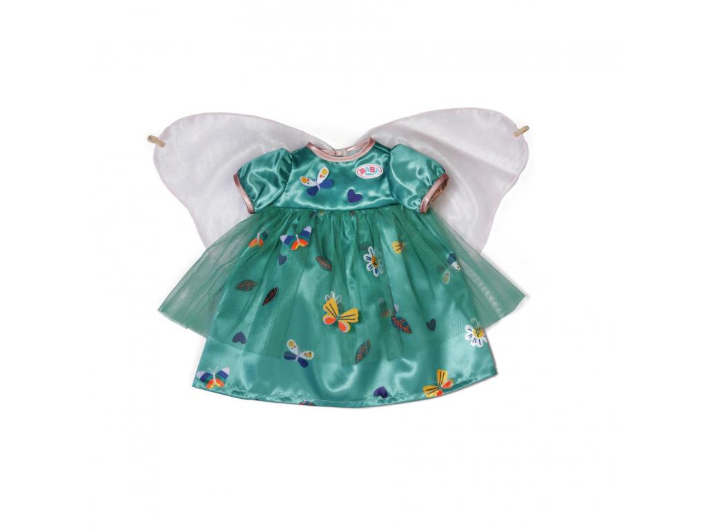Bájos sötétzöld tündérruha 43 cm-es Baby Born játékbabákra, szárnyakkal kiegészítve. 3 éves kortól ajánlott.