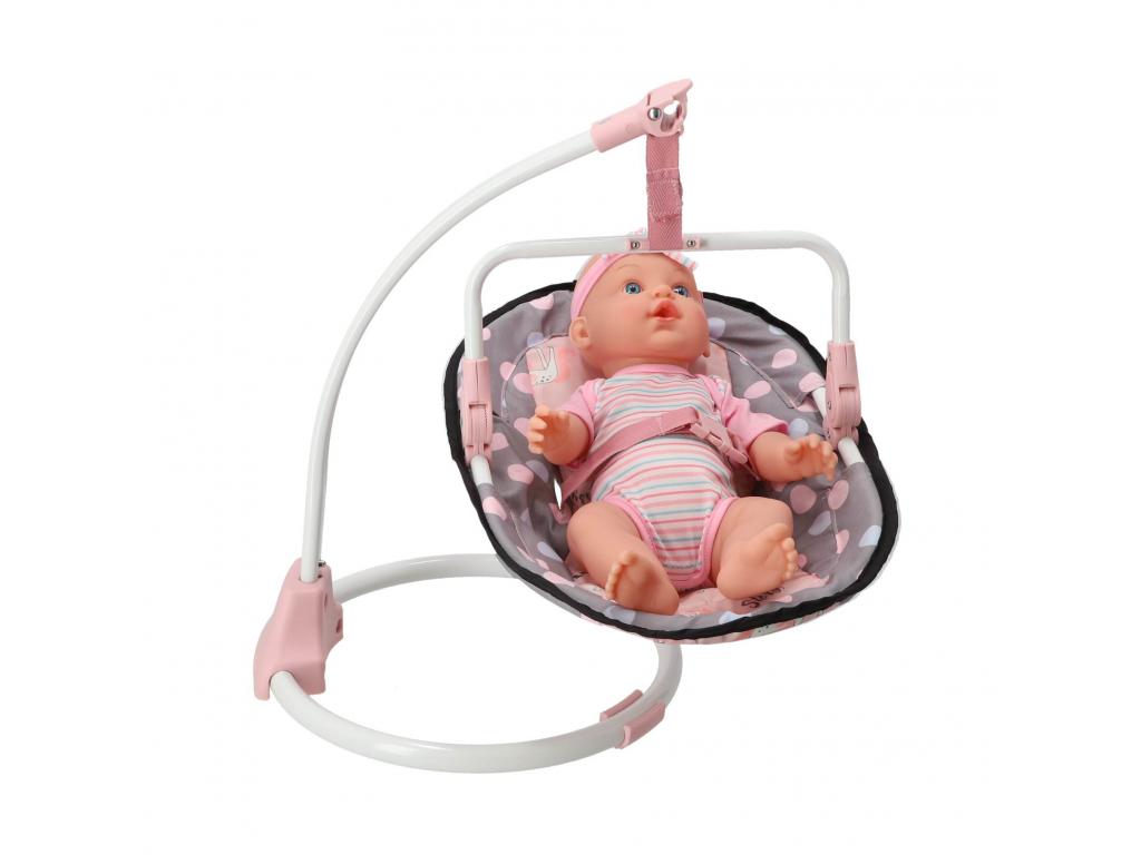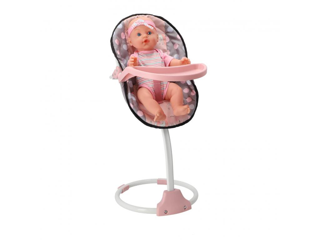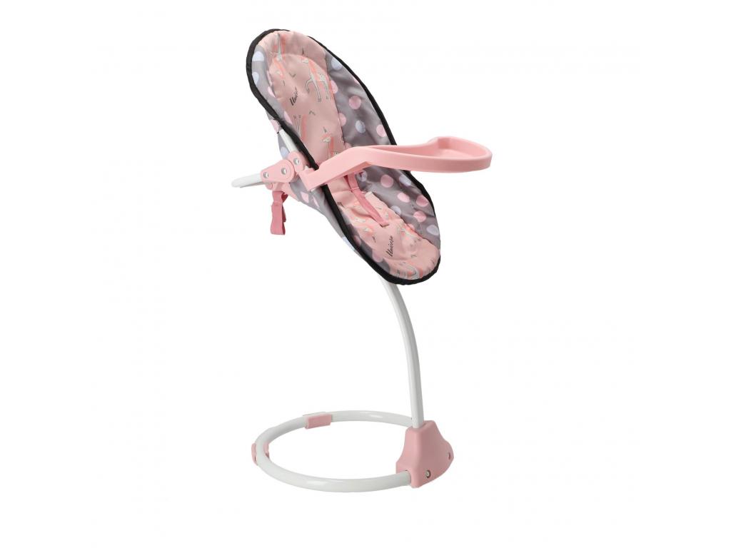 3 az 1-ben babaszék szürke/rózsaszín kivitelben. Használható étkezőszékként, hintaszékként és bölcsőként. Kb. 40 cm-es babák számára alkalmas. 3 éves kortól.