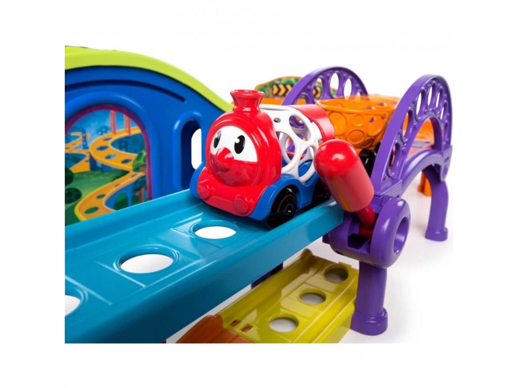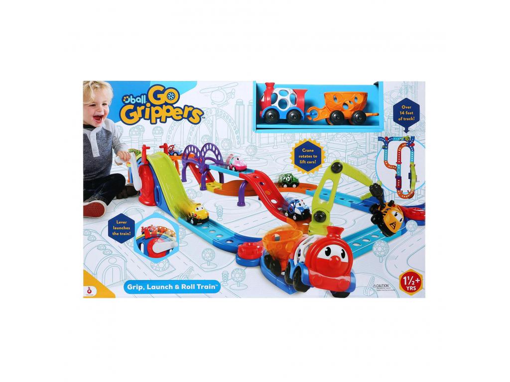 A jellegzetes Oball könnyen fogható kialakításának köszönhetően a készletben található vonat könnyű, rugalmas és tökéletes a kis ujjak számára. A gyerekek a túlméretezett kart használva varázslatos módon felemelhetik a vonatot a dombra, és lecsúsztathatják a pályán. Nyisd ki és csukd be a felvonóhidat, hogy felfedezd a játék két izgalmas szintjét, és ne felejtsd el a forgó darut, amely felemeli és mozgatja a vonatot vagy más Go Grippers járműveket (külön kaphatók).