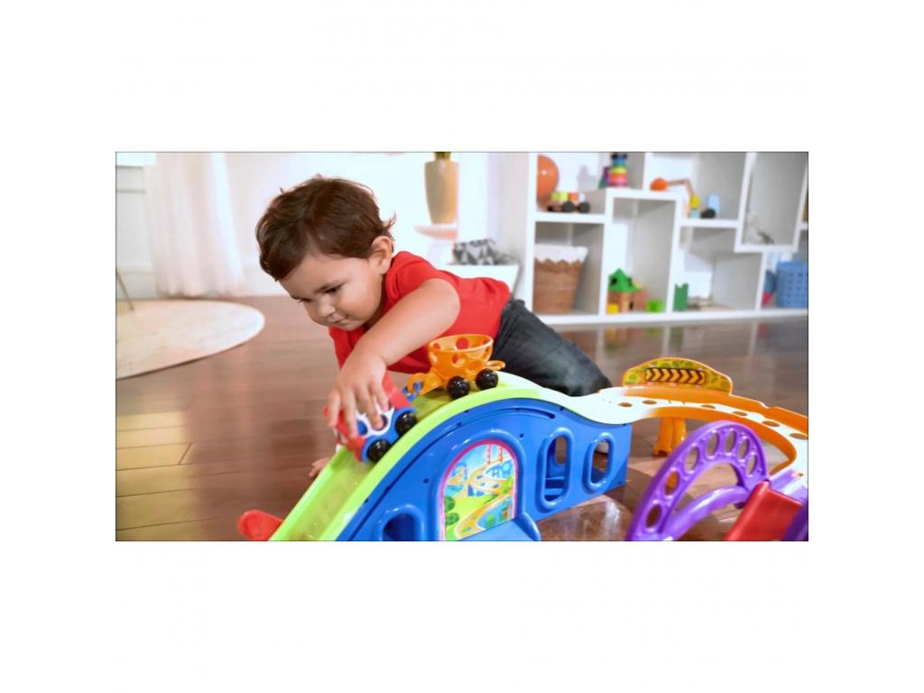 Mindenki szálljon fel a vidám kisvonatra! A tökéletes első vonatszett kisgyerekeknek, tele fantáziadús játékokkal és kis kezekre tervezve. Nincs szükség elemre csak a kisgyerekek erejével működik, minden lökéssel, megfogással és elindítással!