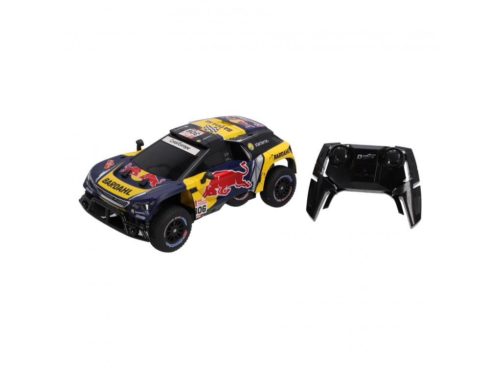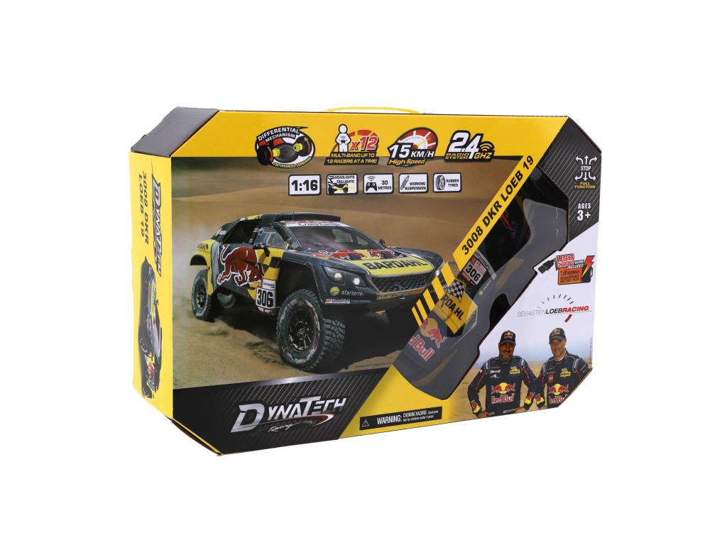 Távirányítású versenyautó a Dynatech-től. Maximális sebesség: 15 km/h. Hatótávolság: 30 méter. 2,4 GHz. Méretarány 1:16. Red Bull rallyautó. 3 éves kortól alkalmas.