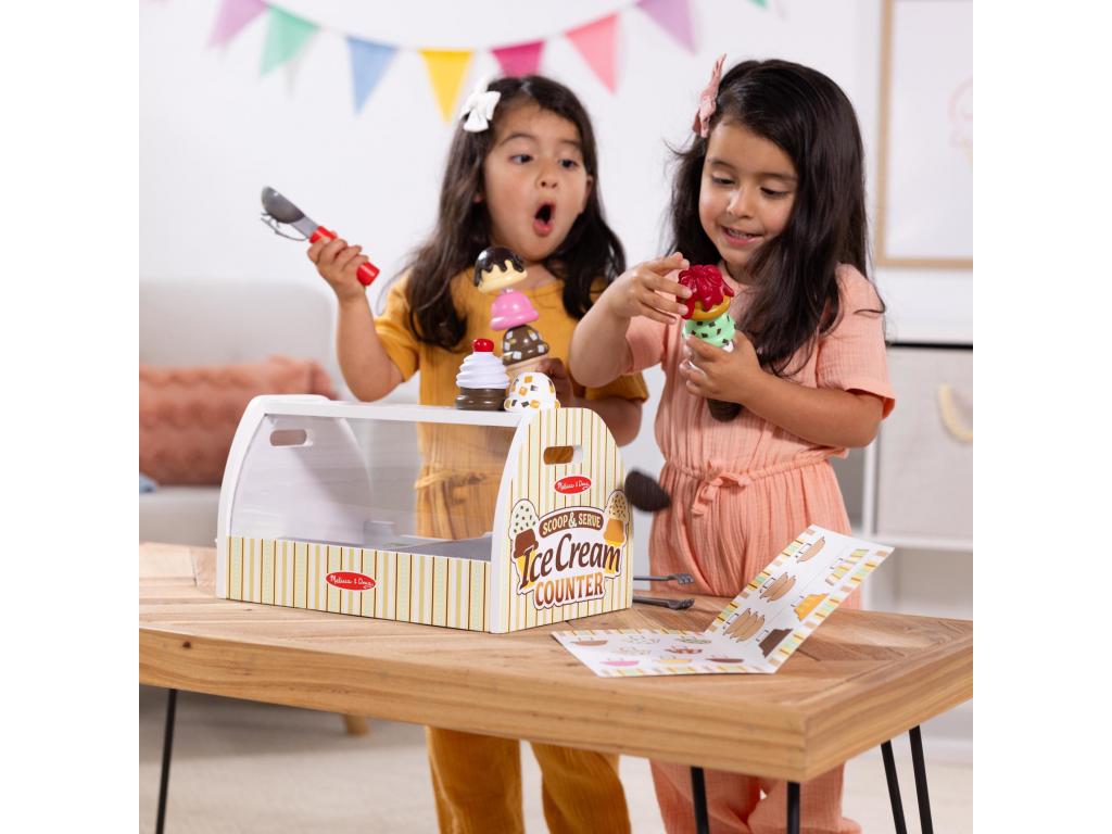A Spin Master Melissa & Doug világából származó konyhai játékkészletekkel a gyerekek játékosan fedezhetik fel a táplálkozás és az ételkészítés témakörét. Minden készlet remek fa játékokat tartalmaz ideális kis szakácsoknak és fantáziadús játékhoz! A Scoop & Serve jégkrémpulttal a jégkrémüzlet hangulata beköltözik a gyerekszobába: itt mindig újra és újra fantasztikus jégkrém-kreációk születnek 8 jégkrémgolyóval, különböző öntetekkel és sok kiegészítővel. A jégkrémgolyók a tölcsérekre vagy a poharakba, az öntetek pedig a golyókra illeszkednek. A működőképes adagolóval a golyókat fel lehet venni és egymásra rakni. Így a gyerekek mellékesen fejleszthetik finommotorikus képességeiket, szociális interakciójukat és kommunikációjukat.