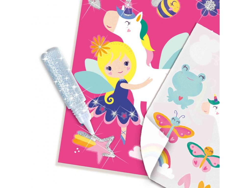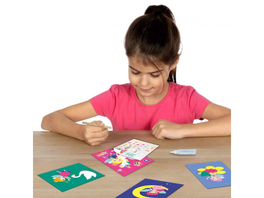 Kézműves készlet dörzsölős üdvözlőkártyák díszítéséhez. 79 kiegészítőt tartalmaz. 3 éves kortól alkalmas.