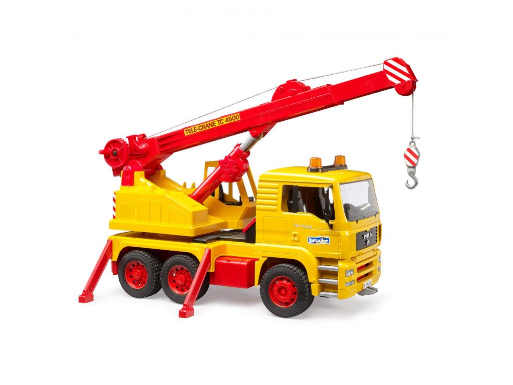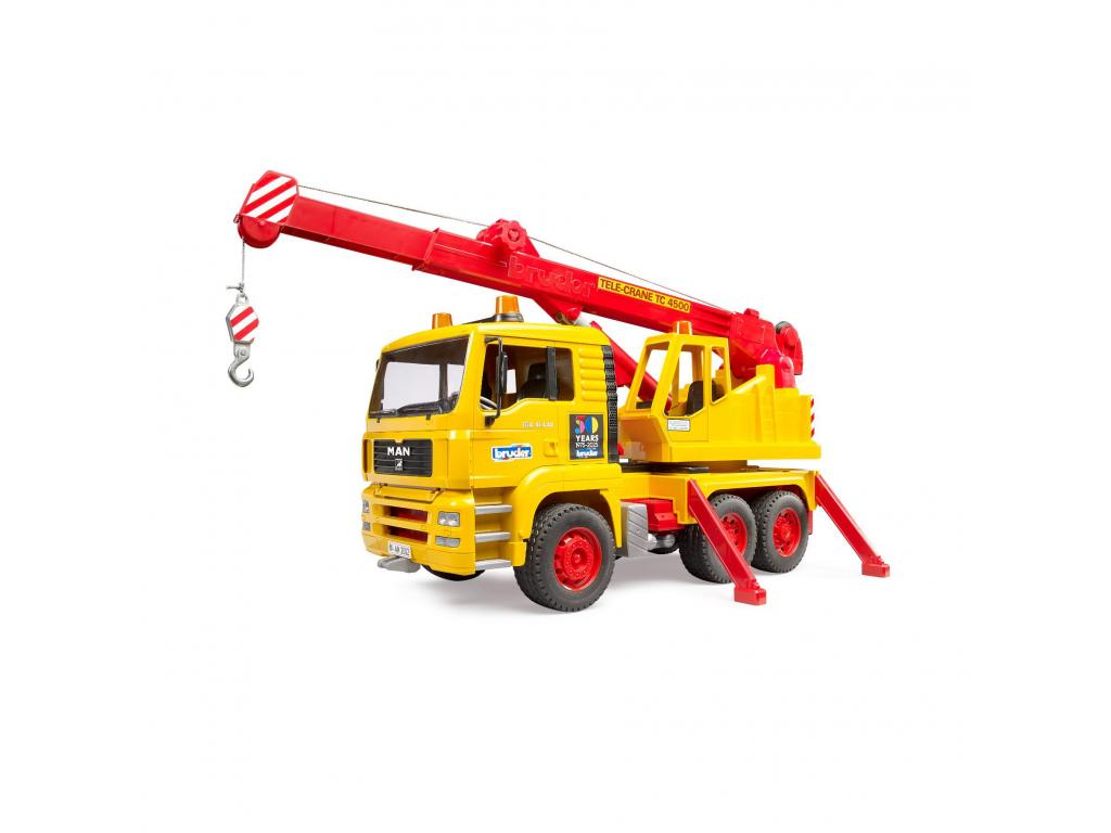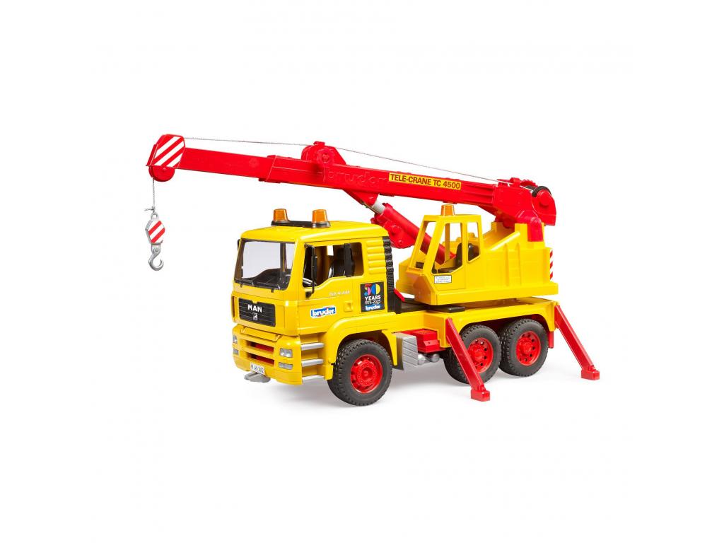Bruder MAN teherautó daruval, 50 éves jubileumi kiadásban. Kihúzható daruval és valósághű funkciókkal. Szilárd műanyagból készült.