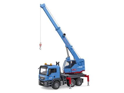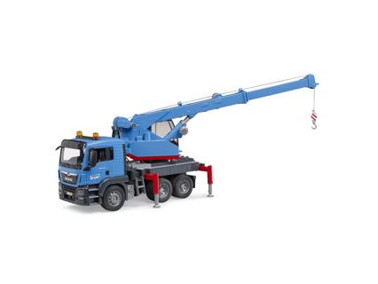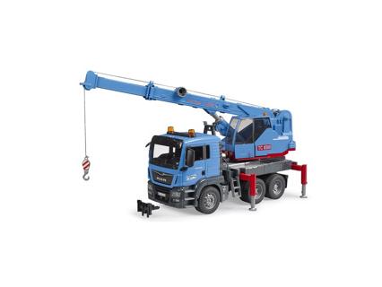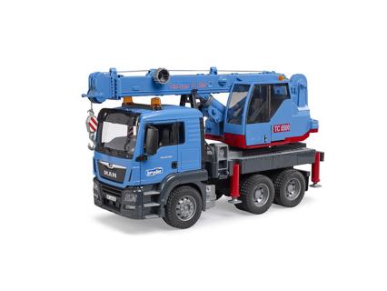 A Bruder MAN TGS teherautó daruval, kék leírása: