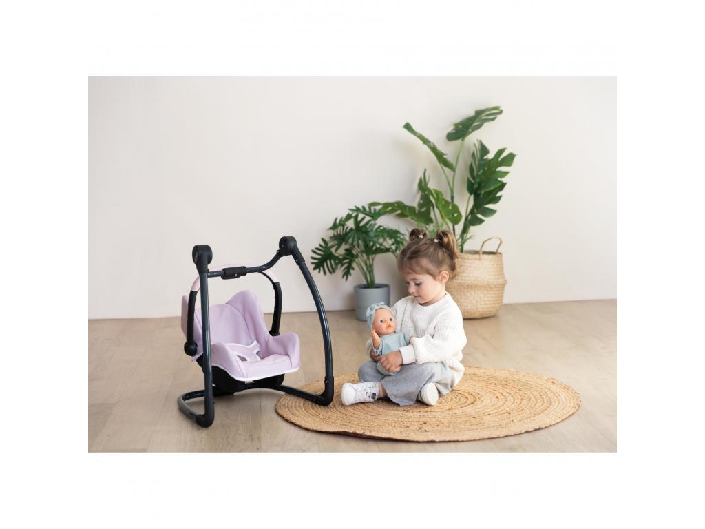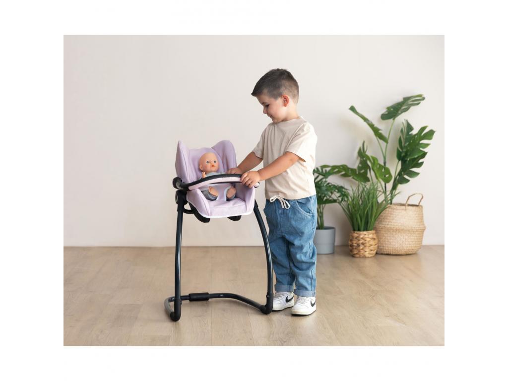 Etetőszék hintával és autósüléssel biztonsági övvel, 42 cm-es babának; magasság: 71 cm. Méret: 35*25*51 cm