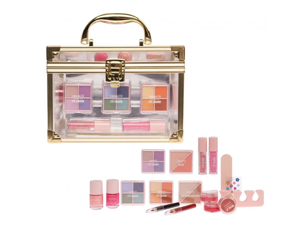 Casuelle sminkkészlet bőröndben, arany kerettel