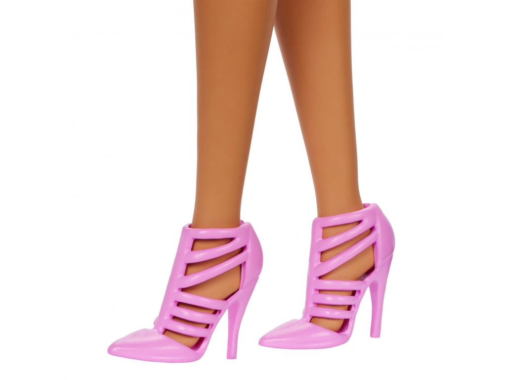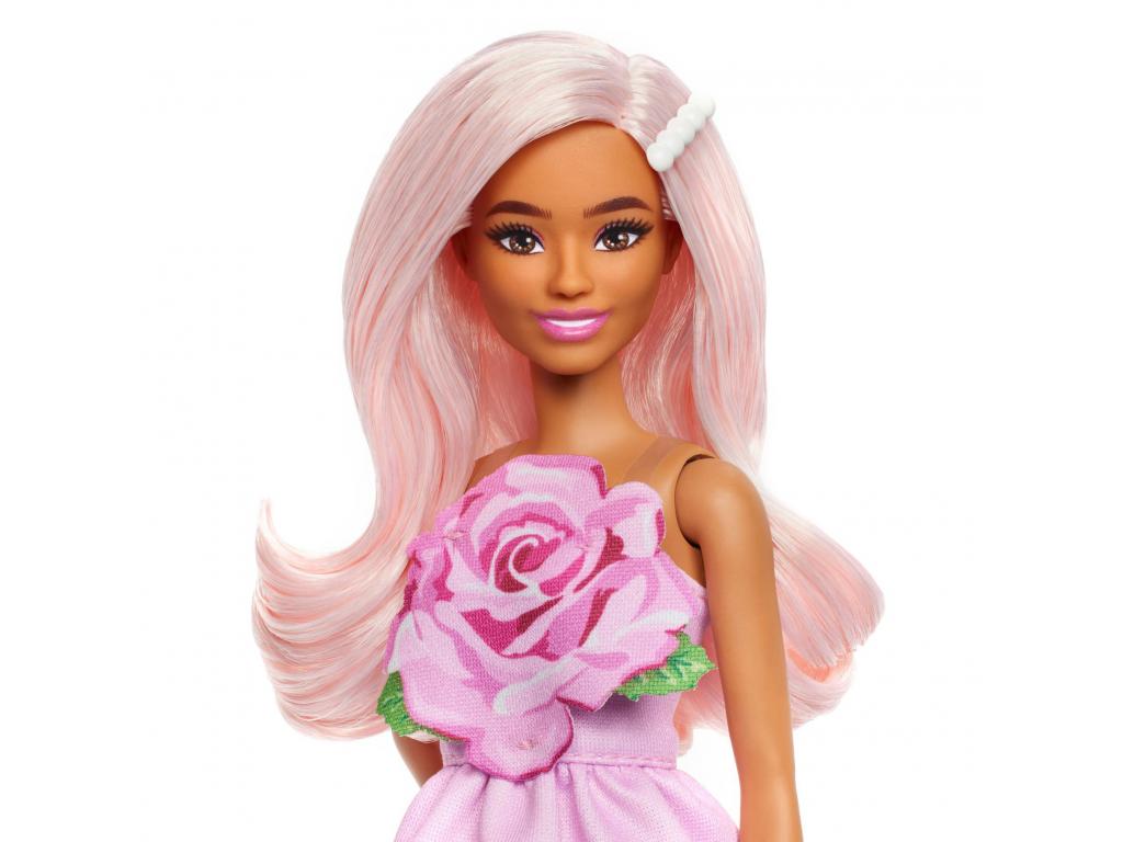 A Barbie Fashionista baba, rózsaszín ruhában leírása: