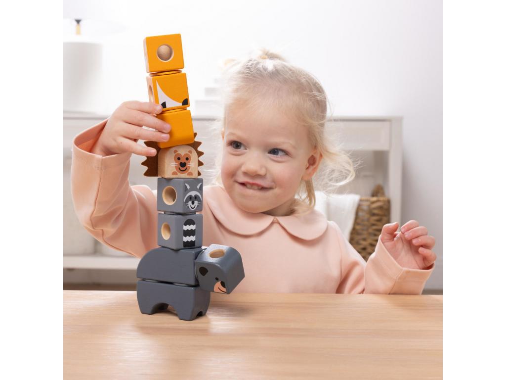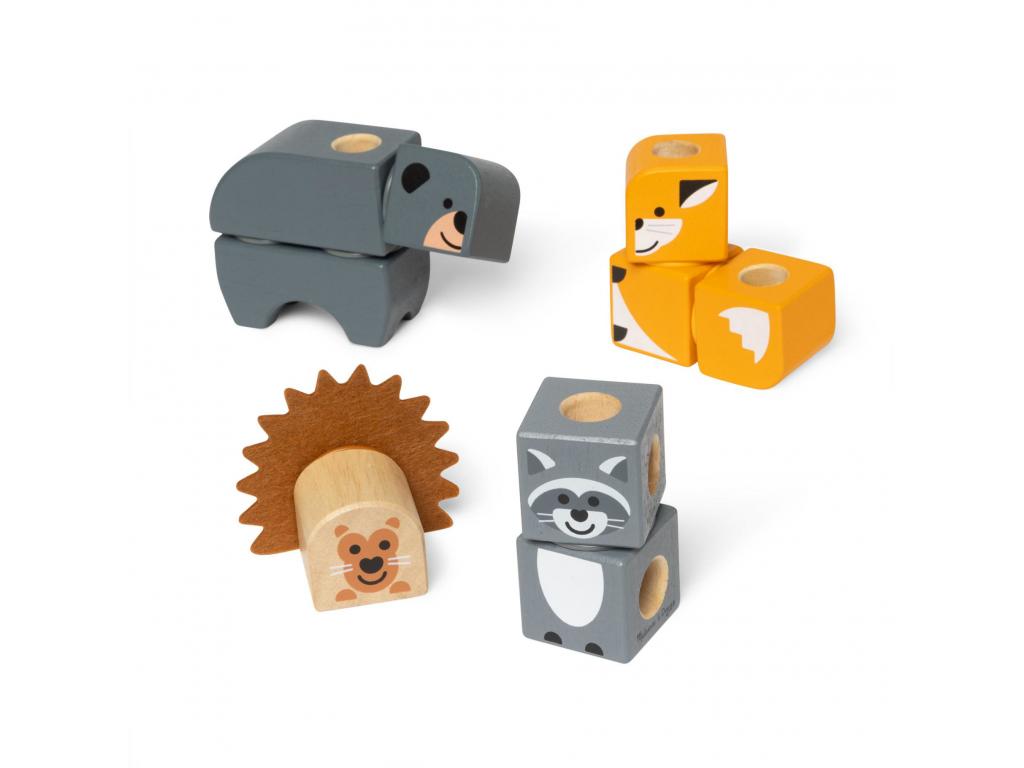 Egy doboz erdei állatokkal, 360°-os építéshez szabad vagy irányított játékhoz.
