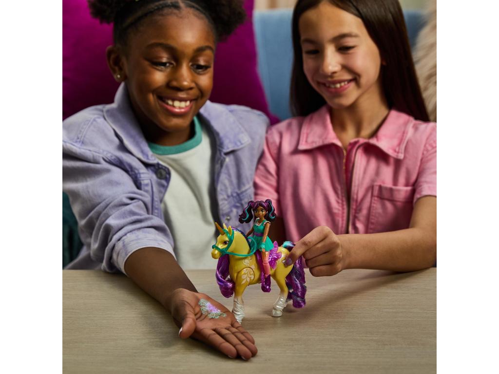 Játékszett Ava babával és Leaf egyszarvúval a Netflixes Unicorn Academy-ból. Kisebb kiegészítőkkel együtt. Műanyagból és textilből készült. 4 éves kortól alkalmas.