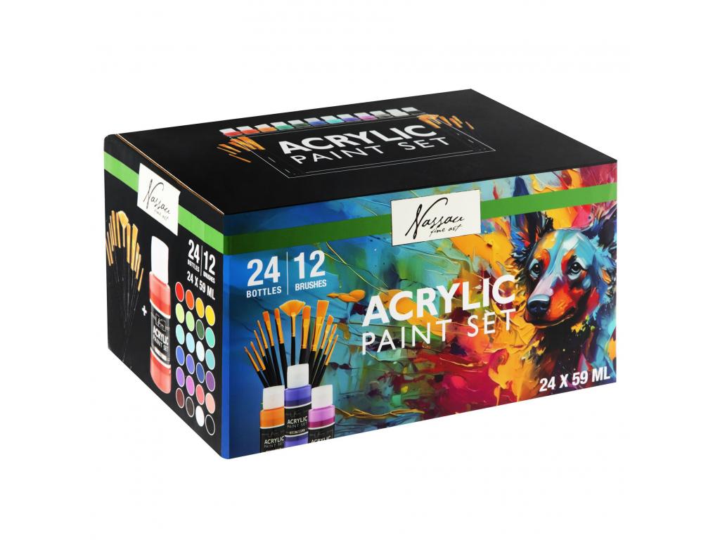 Akrilfesték-készlet, 24 tubussal (24 x 59 ml) és 12 ecsettel