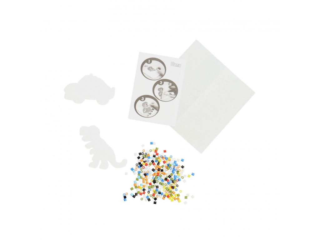 A Hama vasalható gyöngyök 1100 darabos, dinó/autó leírása: