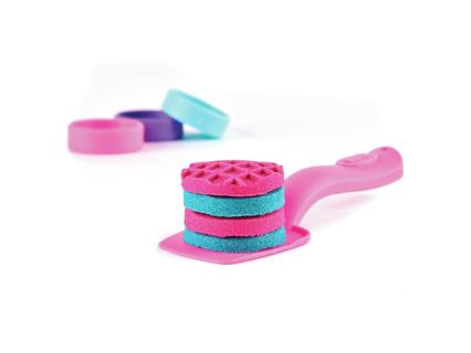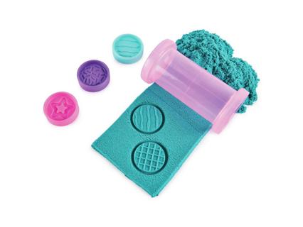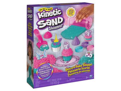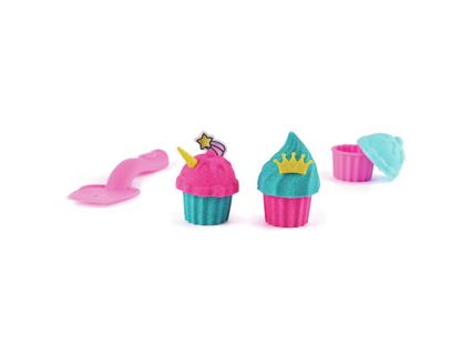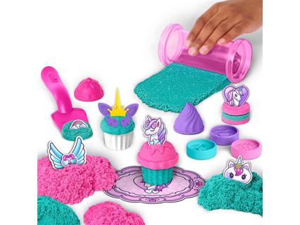 453 gramm kinetikus homokkal. A homok különböző színekben és csillogó darabokkal kapható. A hozzá tartozó kiegészítőkkel egyszarvús cupcake-ek, sütemények, fagylaltok és macaronok készíthetők. 3 éves kortól alkalmas.