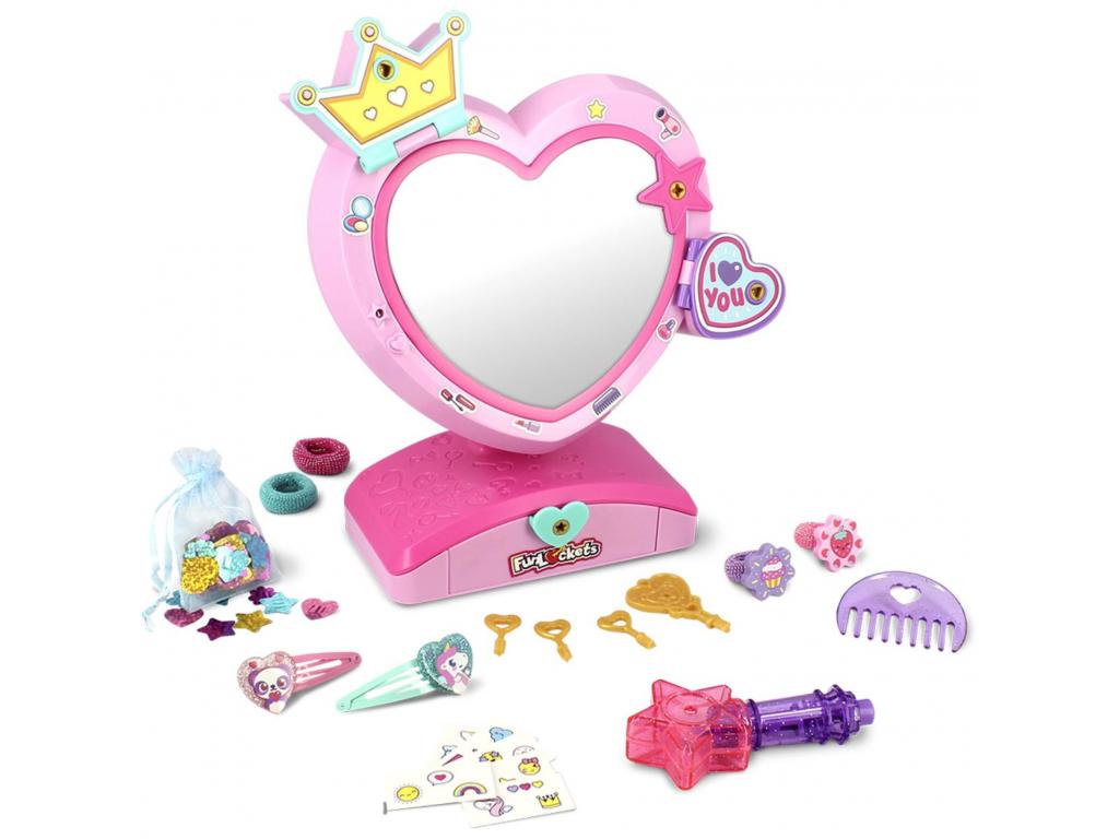 Interaktív tükör titkos rekeszekkel és csillogó hajdíszítő kiegészítőkkel. Műanyagból készült. 6 éves kortól alkalmas.