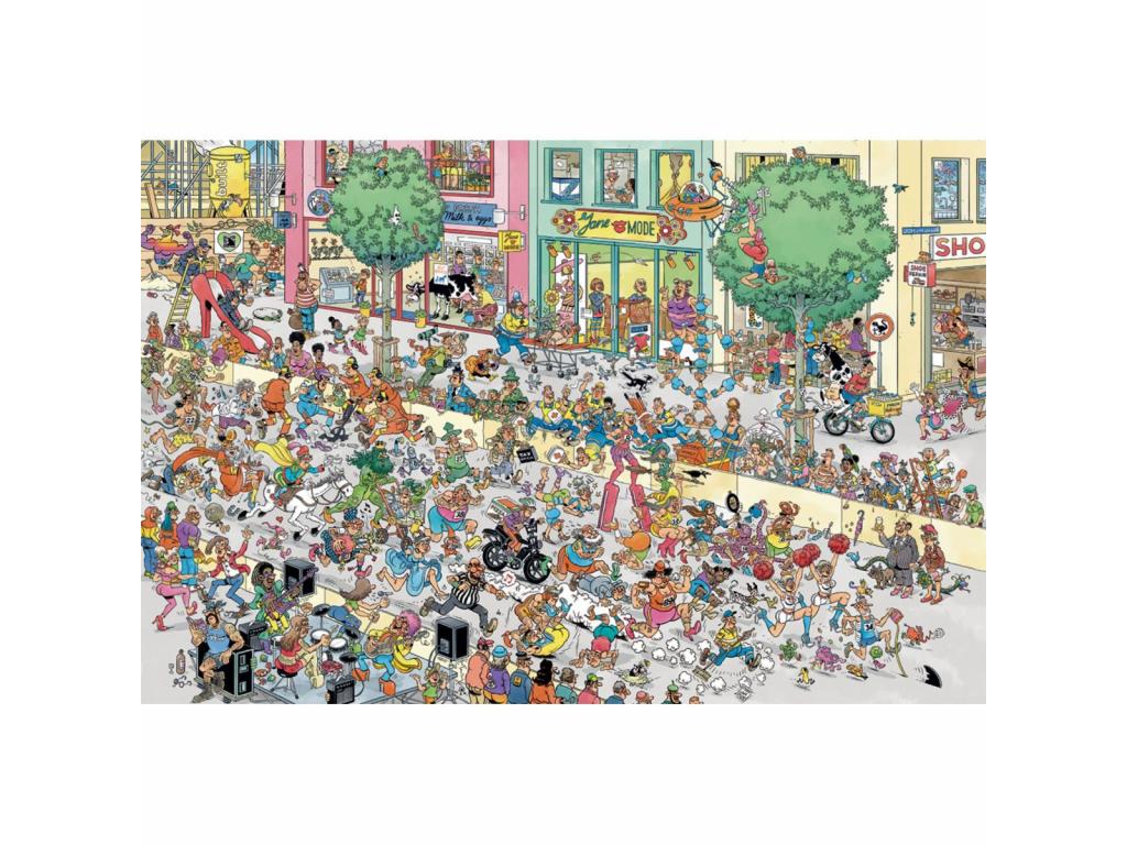 Egy vadonatúj bevásárlóközpont megnyitása alkalmából látványos stiletto-futást szerveznek. Természetesen a Jan van Haasteren család is részt vesz benne! Élvezze ezt az új kalandot a Jan van Haasteren puzzle-lel: Stiletto Run!