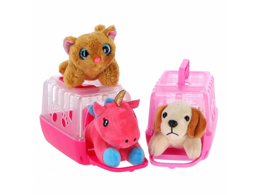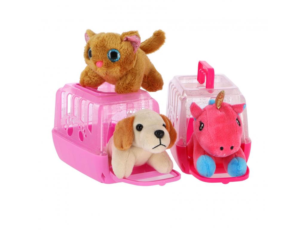 Játékszett plüss háziállattal utazótáskában. Tartalmazza a gondozáshoz szükséges kiegészítőket. Különböző kivitelekben kapható: kutya, macska, vagy egyszarvú. Az ár 1 db termékre vonatkozik.