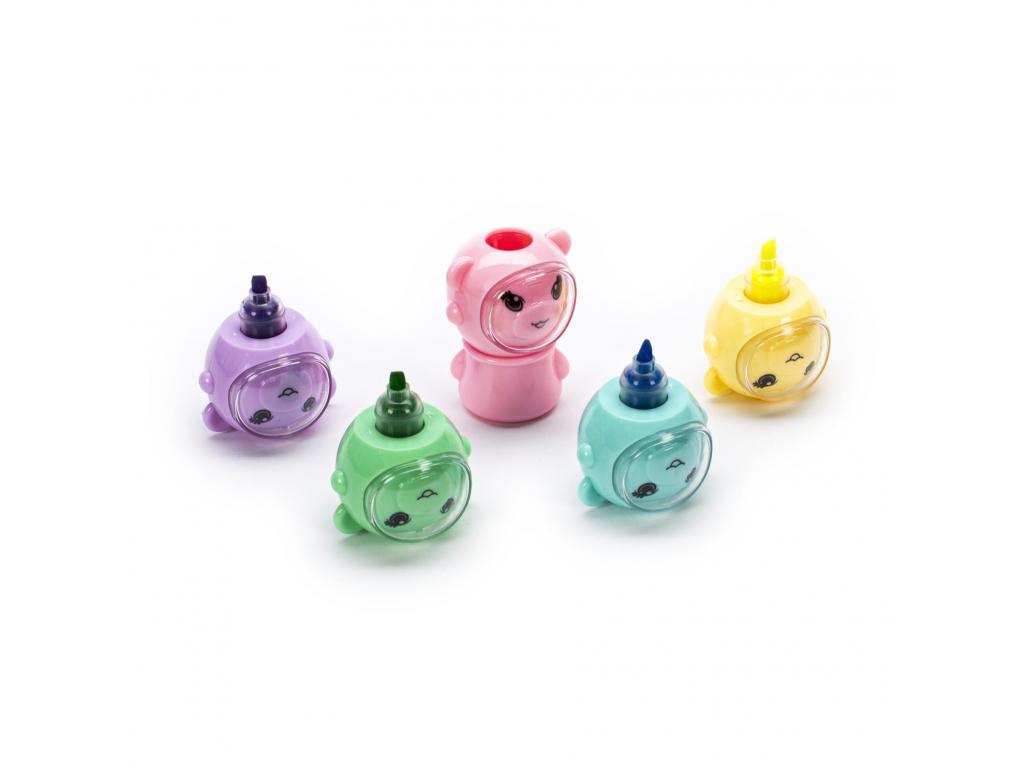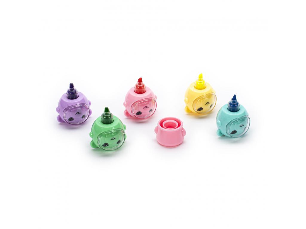 Rakásolható kiemelő tollak axolotl témával a Dream Pop sorozatból. 6 színű szett egy rakható kivitelben. Műanyagból készült. 3 éves kortól alkalmas.