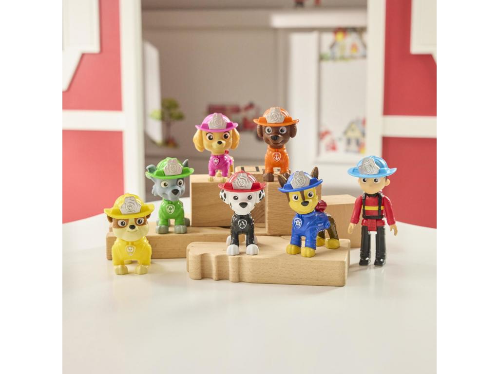 Csatlakozz a PAW Patrol tűzoltócsapathoz, és merülj el hősi kalandokban ezekkel a gyűjthető játékfigurákkal! Ez az izgalmas szett 7 gyűjthető figurát tartalmaz, köztük Chase-t, Marshallt, Skye-t, Rubble-t, Rocky-t és Zumát, valamint Rydert, aki több mint 7,5 cm magas, mozgatható fejjel és végtagokkal. Minden figura teljesen új tűzoltó felszerelésben pompázik, készen arra, hogy bármilyen vészhelyzetet megoldjon. A gyerekek újrajátszhatják kedvenc jeleneteiket a sorozatból, vagy saját kalandokat alkothatnak, ezzel beindítva fantáziájukat és mesemondó képességeiket. A még nagyobb szórakozás érdekében kombinálhatod a Tűzoltó Parancsnoksággal, a Gyors újratöltésű tűzoltóautóval és hat különböző tűzoltó figurával és járművel, így az izgalom soha nem ér véget. (mindegyik külön kapható) Élvezd újra a PAW Patrol korábbi évadainak kedves pillanatait, mint például a Mighty Pups és a PAW Patrol Movie, vagy alkoss új kalandokat a PAW Patrol toronnyal, az egyes PAW Patrol akciófigurákkal és PAW Patrol járműveikkel, turbófeltöltött kalandokért.