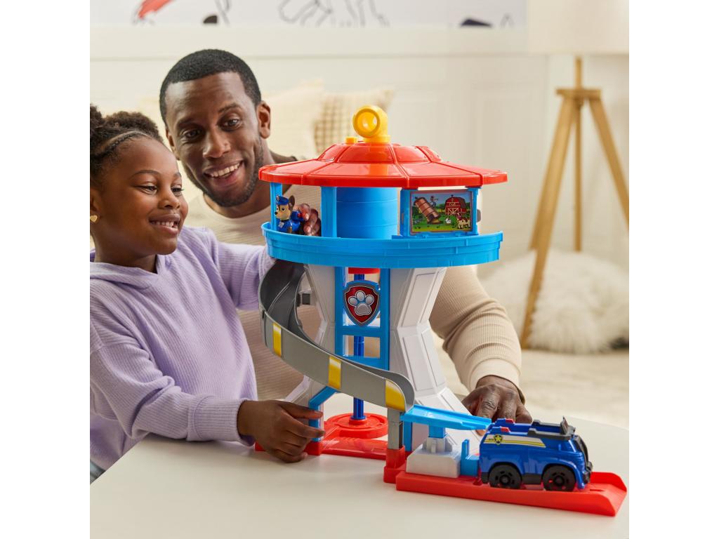 A népszerű tévésorozat főhadiszállás játékkészletével az óvodáskorú gyerekek mentőakciókat játszhatnak el és saját történeteket találhatnak ki. Ez a játékkészlet minden PAW Patrol rajongó számára abszolút kötelező. Az ikonikus Lookout Tower tartalmazza a sorozatból ismert főhadiszállást, Chase alapjárművét, valamint két Chase kutyafigurát egy Chase-t, aki éppen nem szolgálatban van, ezért egyenruha nélkül jár, és egy Chase-t hős módban. Az őrtorony körülbelül 50 cm magas, és optimális kilátást nyújt az eseményekre. Amikor eljön az ideje a következő mentési akciónak, az egyenruha nélküli Chase-t a torony liftjének elejére helyezik, míg a hős Chase-t a hátsó részre. Emelje fel a liftet, hogy elforduljon, és a normál Chase egyenruhás hős Chase-sé változik. Amikor a bátor kiskutya eléri az őrtorony tetejét, meg kell néznie a vezérlőpultot, hogy a megbízási kártyák segítségével kiválassza a nap küldetését. A küldetés kiválasztása után az egyik távcső kártyát be kell helyezni, hogy a forgatható távcsőn keresztül megnézhesse végül is tudnia kell, hová kell mennie. Ha Chase-nek akcióval teli mentőakcióba kell indulnia, le kell tolni a csúszdán a főhadiszálláson, hogy közvetlenül a rendőrautójába ugorhasson. Ezután csak meg kell nyomni a kilövőszerkezetet, és már indulhat is. Még több játéklehetőségért a többi szőrös barátot, mint Marshall, Skye és Rubble, valamint kedvenc járműveiket (mindegyik külön kapható) kombinálhatjuk a főhadiszállás játékkészlettel. A Spin Master PAW Patrol játékokkal a gyerekek megvalósíthatják saját ötleteiket és fejleszthetik motorikus képességeiket szerepjátékok révén, miközben kedvenc jeleneteiket a sorozatból életre kelthetik. A PAW Patrol akciófigurák, alapjárművek, játékkészletek és plüssállatok ideális játékok 3 évesnél idősebb fiúknak és lányoknak, és minden otthonba elhozzák a PAW Patrol izgalmas világát. Tartalom: * 1 főhadiszállás * 2 Chase figura * 3 kétoldalas megbízási kártya * 3 kétoldalas lencse a távcsőhöz * 1 rendőrautó Méretek: 50,8 x 38 x 13,1 cm