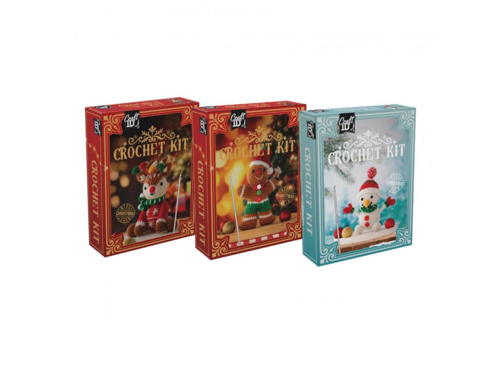 Horgoló készlet karácsonyi rénszarvas, mézeskalács emberke vagy hóember, 1 db