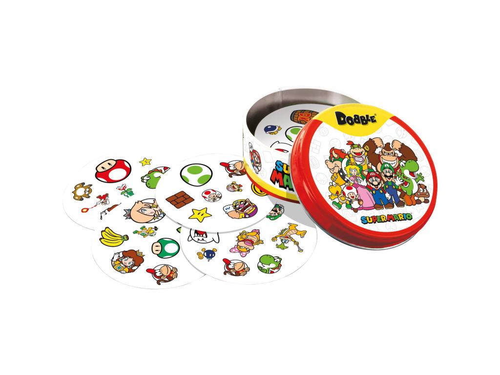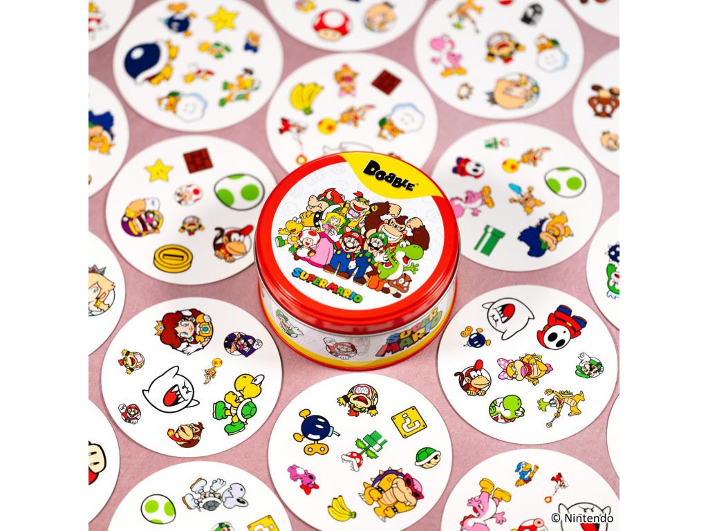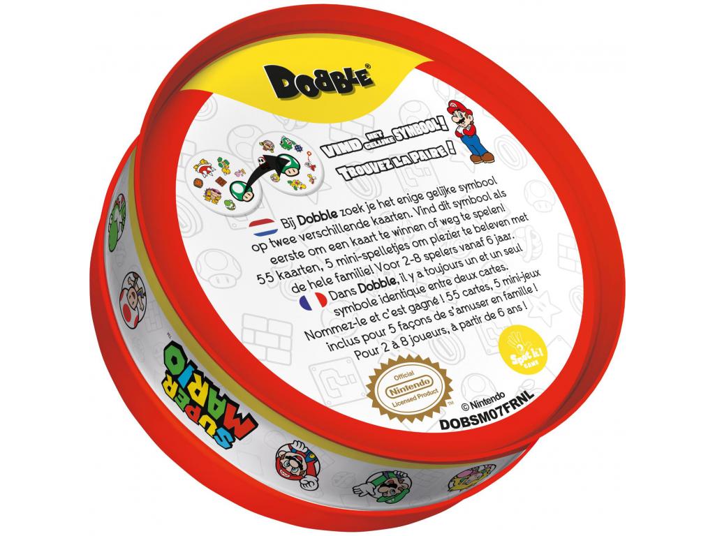A Dobble Super Mario ötvözi a Dobble gyors, izgalmas játékmenetét az ikonikus Super Mario univerzummal! Legyél az első, aki megtalálja a két kártyán a megfelelő szimbólumokat. Ideális Mario-rajongóknak és minden korosztály számára. Szórakoztató és addiktív játék az egész családnak! Holland nyelvű