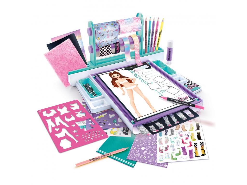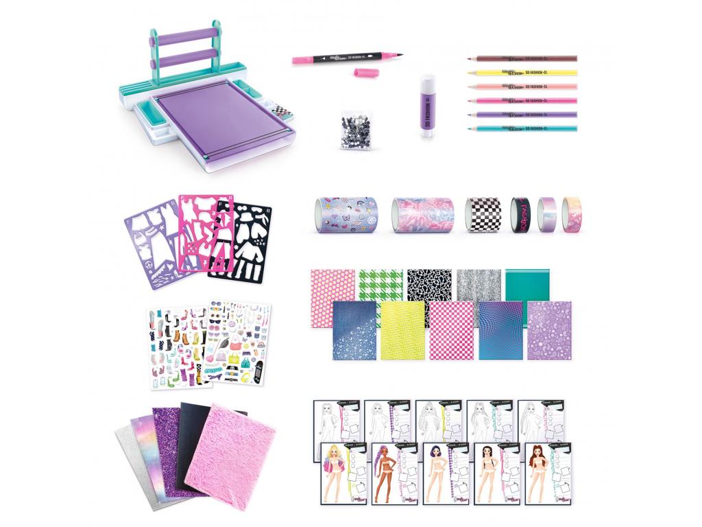 Készítsd el saját divatkollekciódat ezzel az all-inclusive stúdióval! Vágj, ragassz, rajzolj és színezz, hogy szupertrendi ruhákat alkoss. A mellékelt szövetlapokkal és számos kiegészítővel igazi stylistként alkothatsz ruhákat! Ez a divatstúdió tökéletes ajándék minden divat- és rajzrajongó számára. 6 éves kortól.